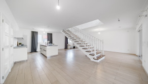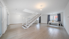 Dom je novostavba, dobre udržiavaná. Pozostáva s prízemia a prvého poschodia. Celkovo ma dom 6 veľkých komfortných priestranných a presvetlených izieb s výhľadom na prírodu. Na prízemí nájdeme vstupnú halu, cez ktorú prejdeme k priestrannej panoramatickej obývacej miestnosti prepojenej s kuchyňou. Kuchyňa je plne vybavená spotrebičmi značky Bosch s centrálnym ostrovčekom. Kuchyňa poskytuje (ca 67m2) prístup na zastrešenú otvorenú terasu (64,76m2) a bezbariérový prístup k bazénu, a zároveň s výhľadom z nej na dych berúcu záhradu, ktorú si vychutnáte pri dobrej káve. V záhrade je aj malebný záhradný domček z tehál. Na prízemí je zároveň ešte jedna priestranná miestnosť, ktorá môže byť využitá ako kancelária. K dispozícii je aj technická miestnosť s tepelným čerpadlom vzduch-voda, bojler, centrálne vetranie pre celý dom, práčka a sušička. Komfortná moderná kúpeľňa so sprchou a toaletou s bidetom. Na poschodí sú k dispozícii 3 spálne, detská izba, krásna presvetlená kúpeľňa s vaňou a dvojitými umývadlami a samostatná toaleta. Z vonkajšej strany je prístup do garáže (31,5m2) pre dve autá. Parkovanie pred domom je možné pre 3 autá. Za domom je udržiavaná zelená záhrada.