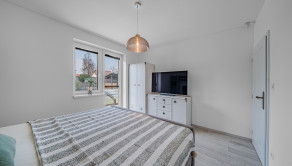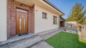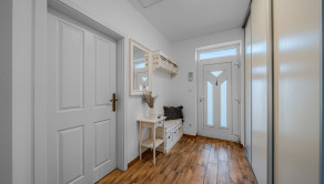 Vstup do domu tvorí priestranná chodba s rolldorom a botníkom. Z chodby je prístup do oddelenej časti, ktorá zahŕňa chodbu s odkladacím priestorom, kúpeľňu so sprchovacím kútom a izbu. Dennú časť domu tvorí veľká priestranná obývacia izba, plne vybavená kuchyňa so spotrebičmi a jedáleň. Z tejto časti je prístup na záhradu. Nočnú časť tvorí detská izba, spálňa a druhá kúpeľňa s vaňou.