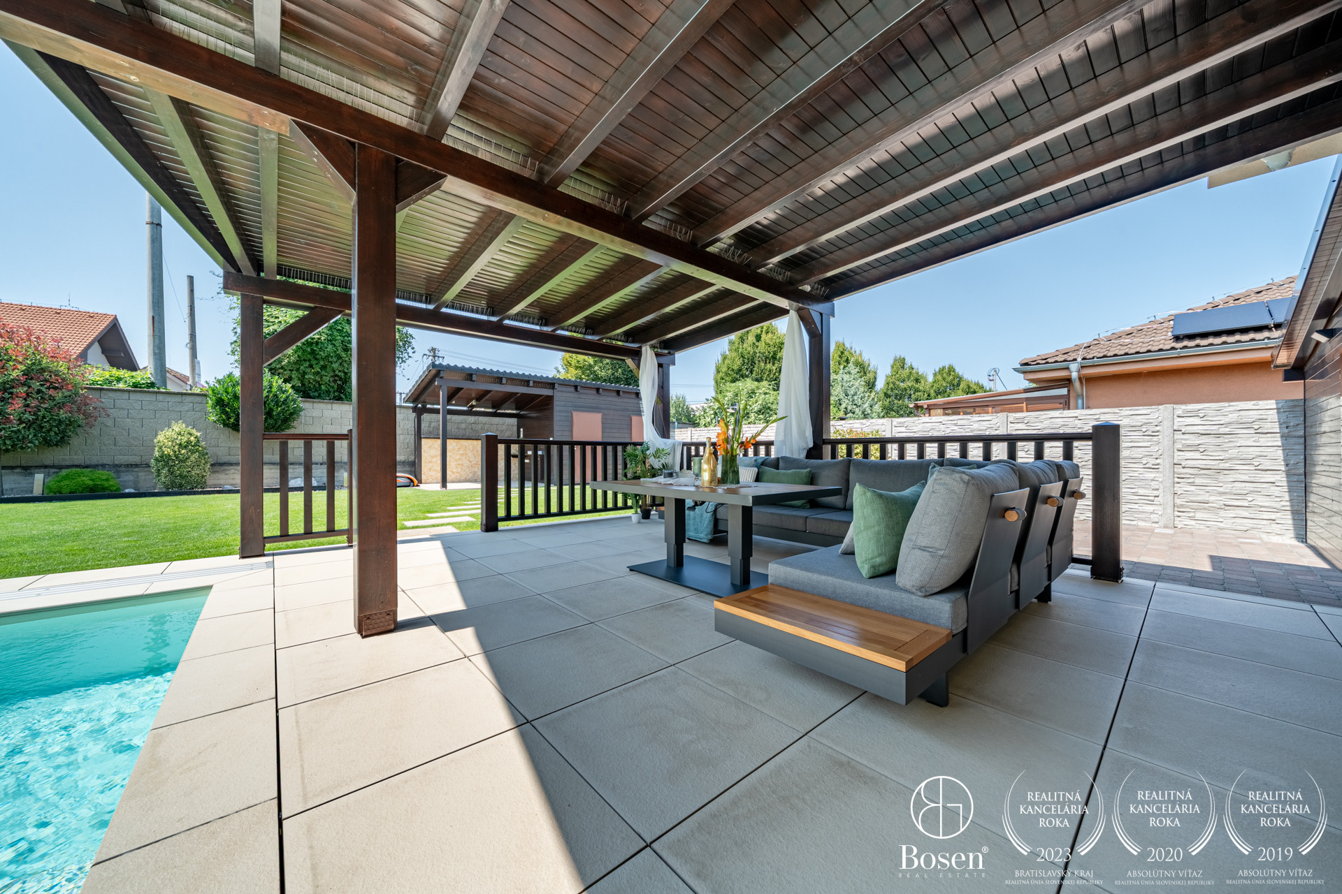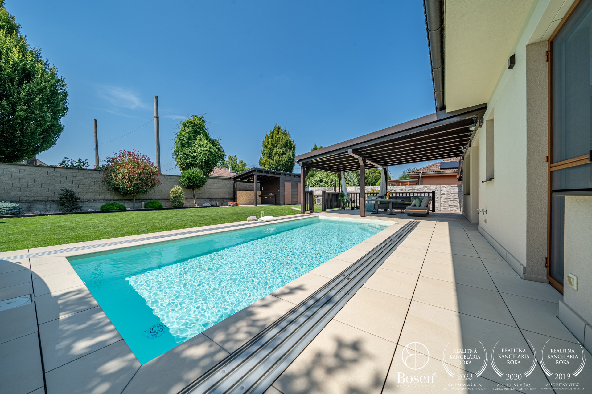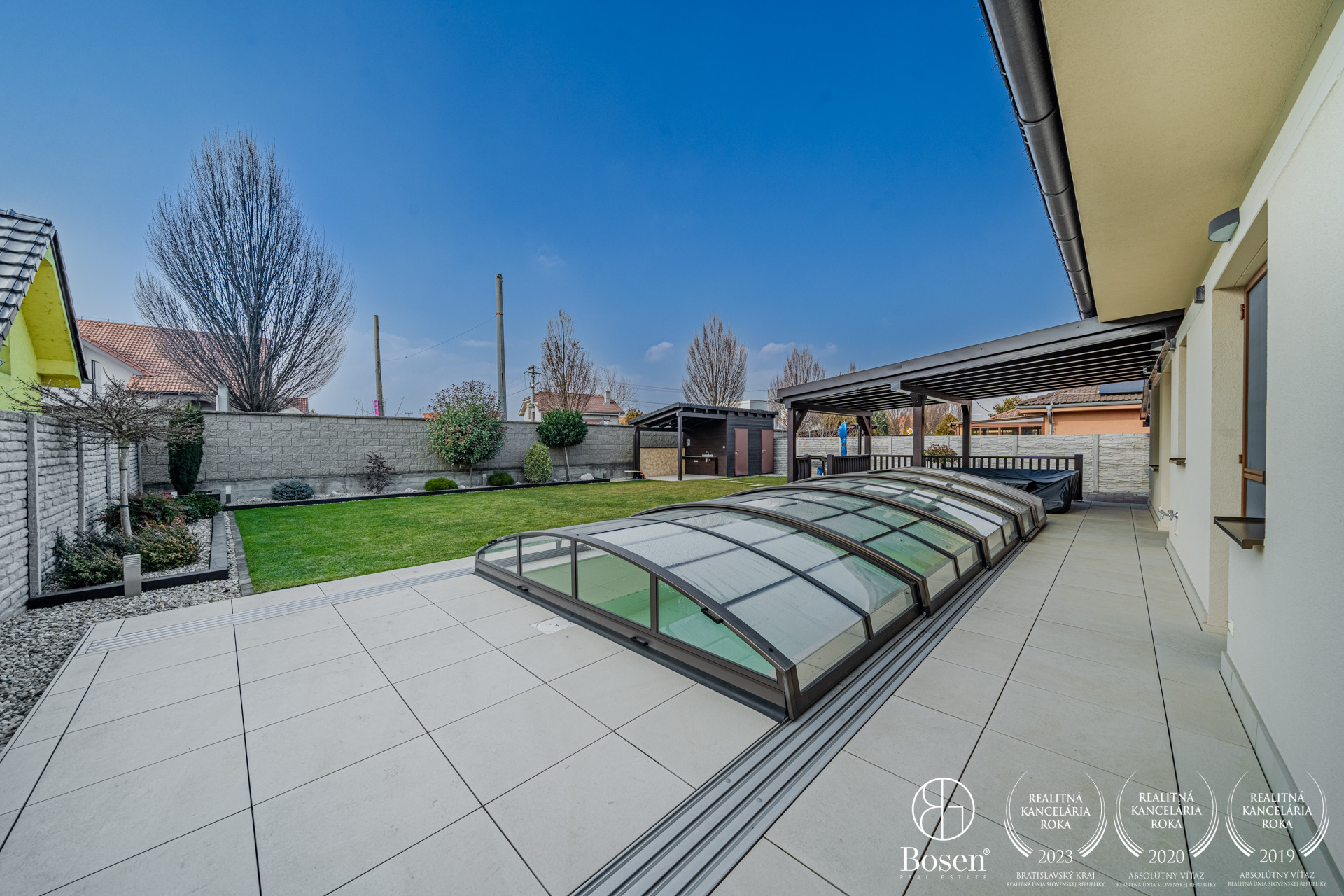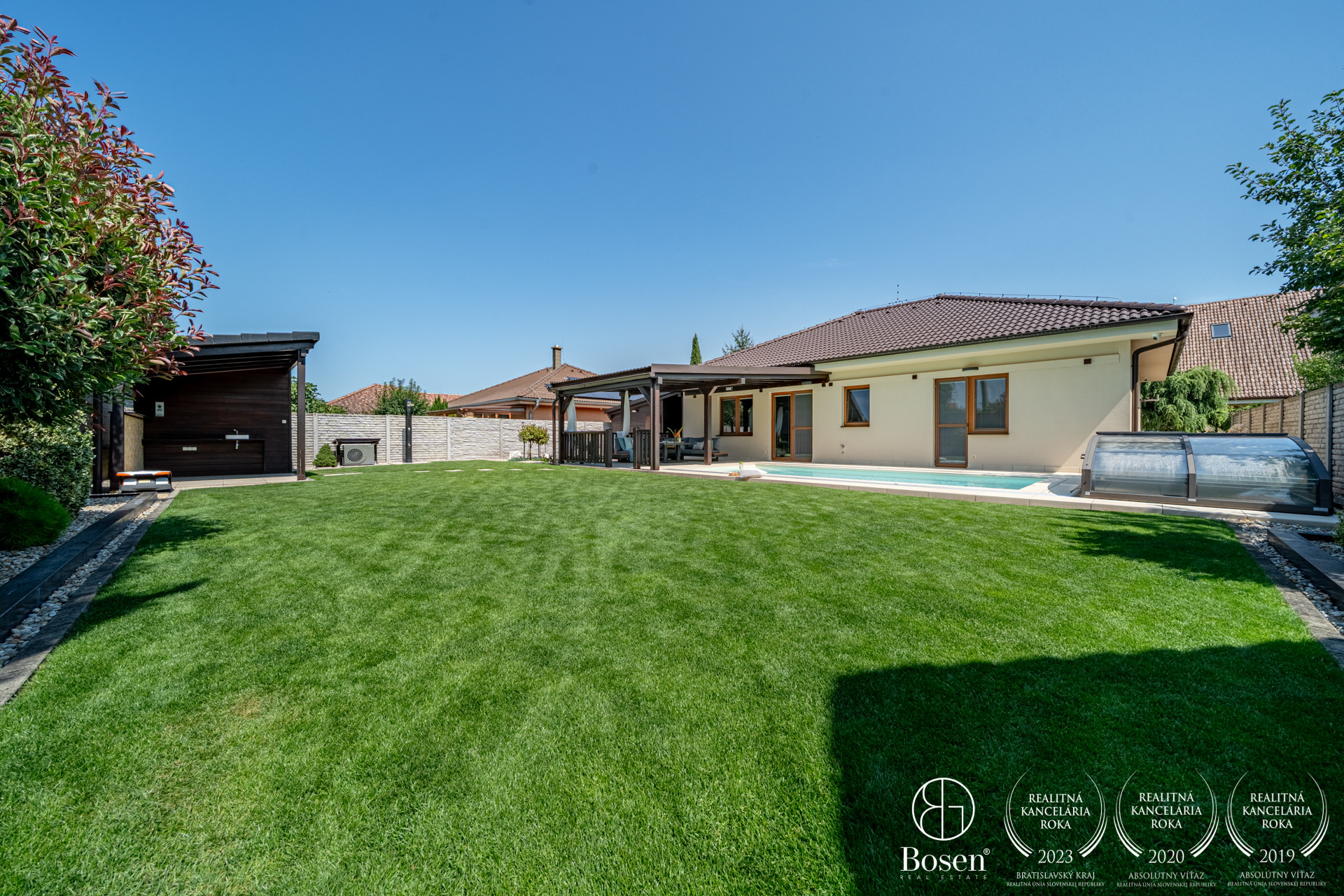 Bosen Group Vám exkluzívne ponúka na predaj zariadený 4-izbový rodinný dom typu bungalov s bazénom a garážou v lokalite Malinovo, Okružná ulica. Interiér aj exteriér nehnuteľnosti sú kompletne zariadené kvalitným nábytkom na mieru, pričom sa pri zariaďovaní dbalo na každý detail.