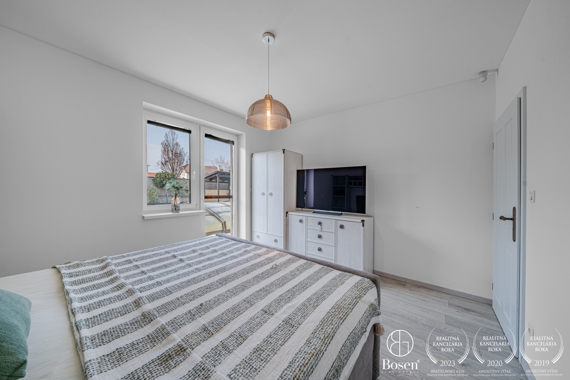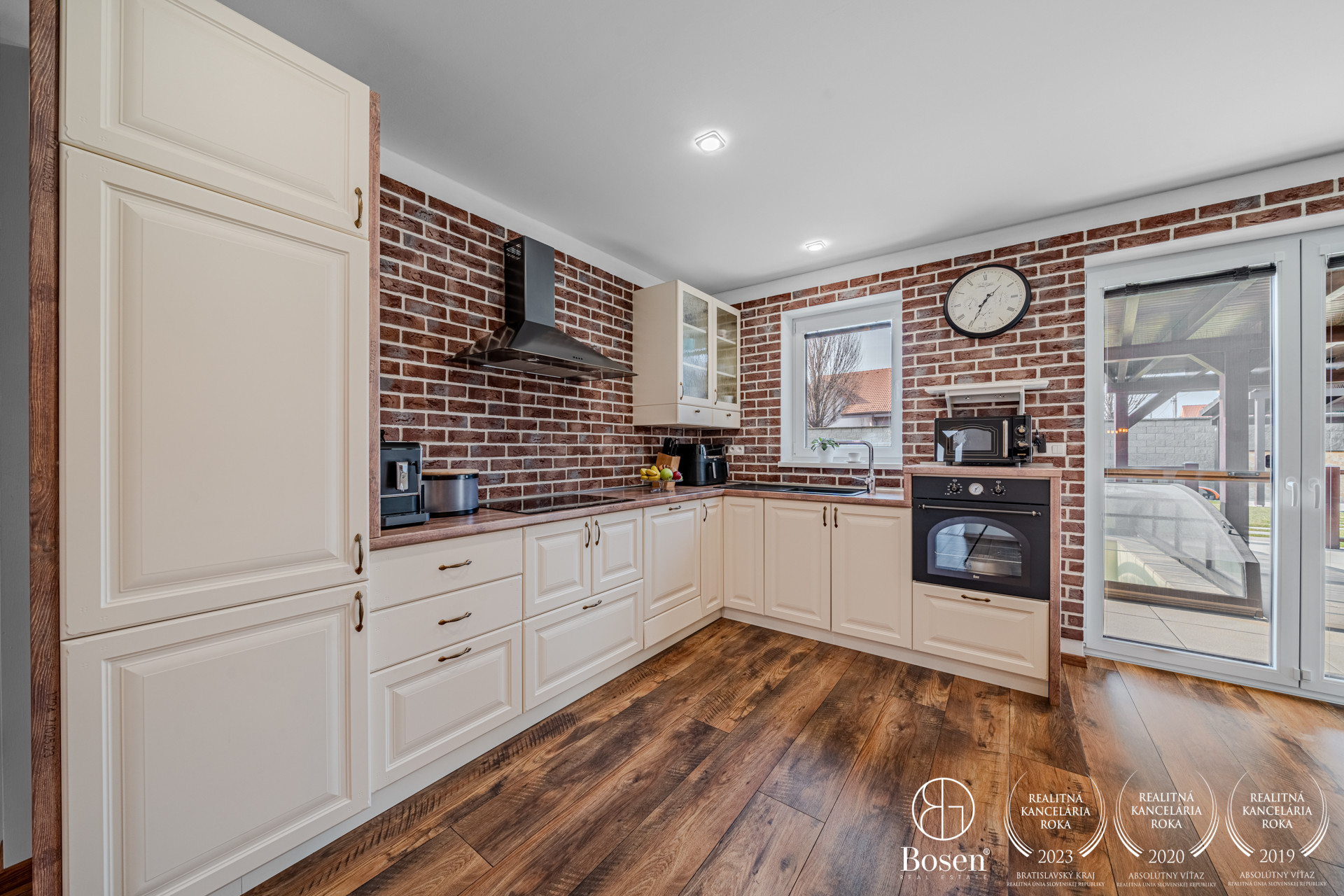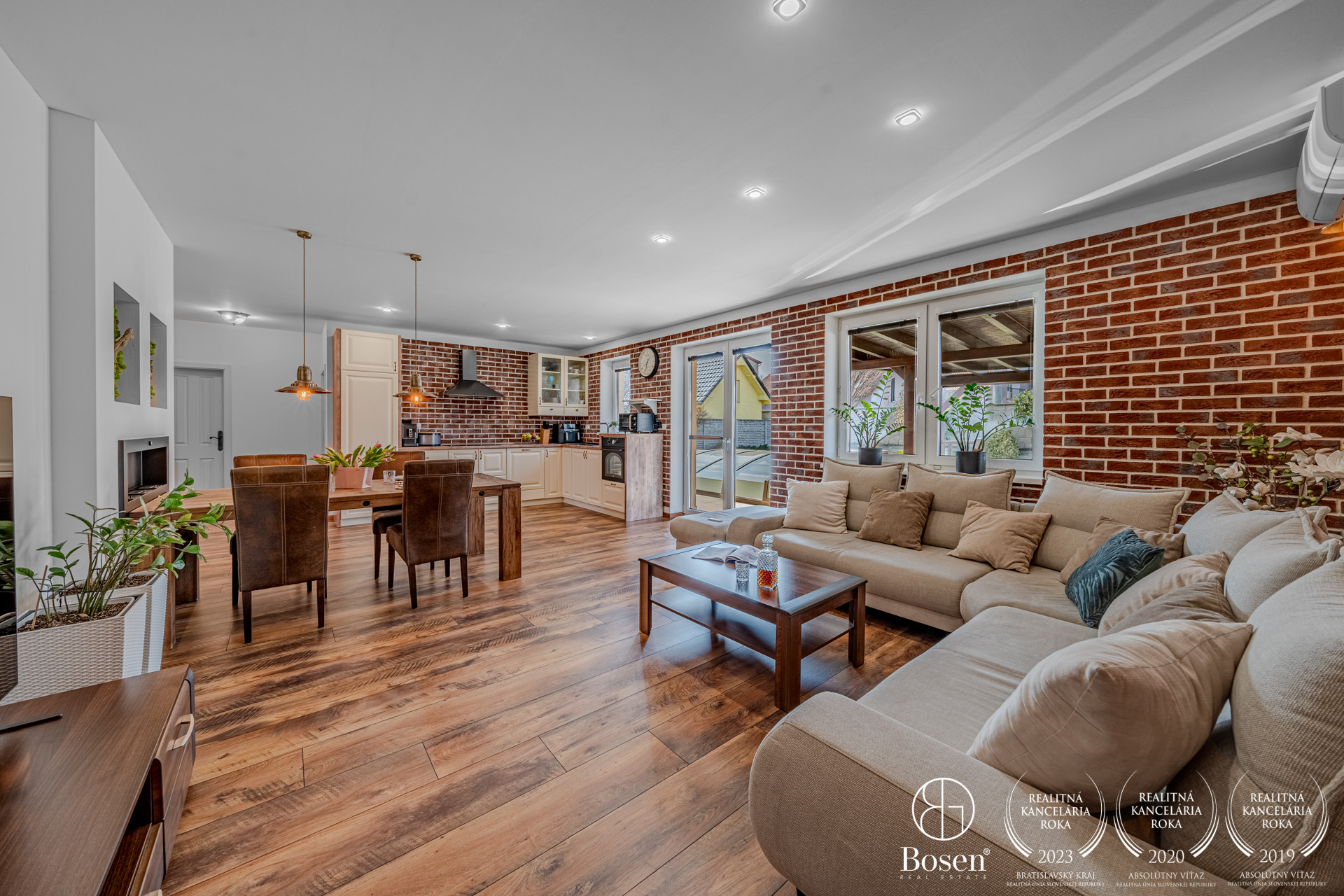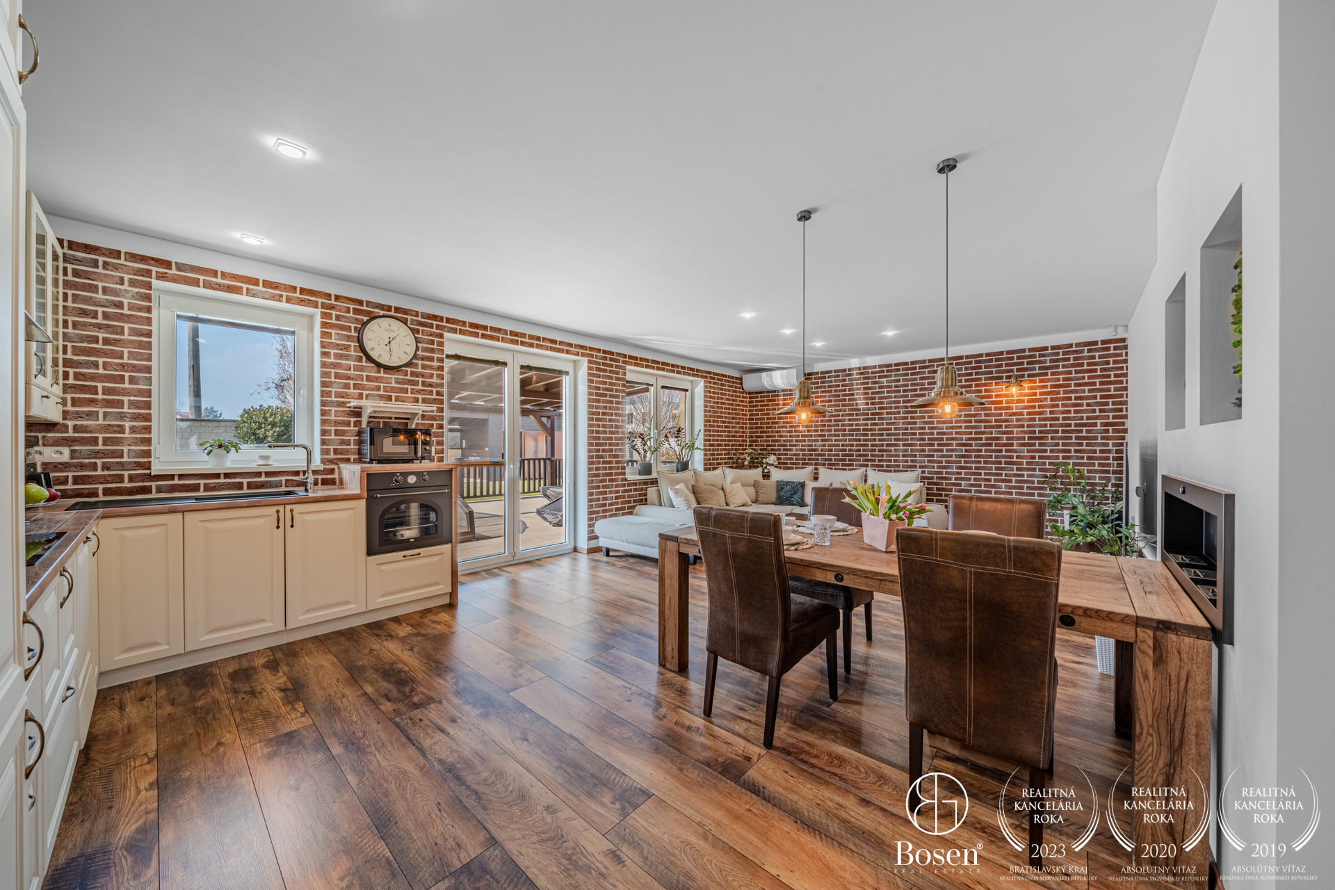 Bosen Group Vám exkluzívne ponúka na predaj zariadený 4-izbový rodinný dom typu bungalov s bazénom a garážou v lokalite Malinovo, Okružná ulica. Interiér aj exteriér nehnuteľnosti sú kompletne zariadené kvalitným nábytkom na mieru, pričom sa pri zariaďovaní dbalo na každý detail.