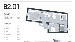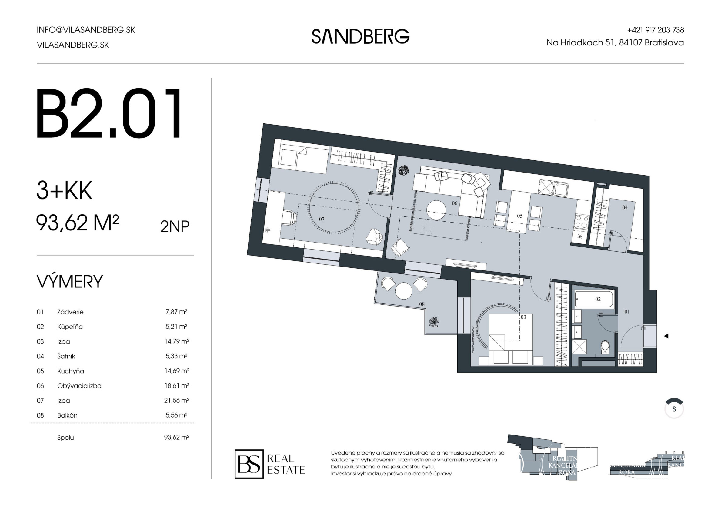 3-izbový byt v projekte Vila Sandberg, situovaný na 2.nadzemnom podlaží. Byt má celkovú podlahovú plochu 94 m² vrátane terasy.