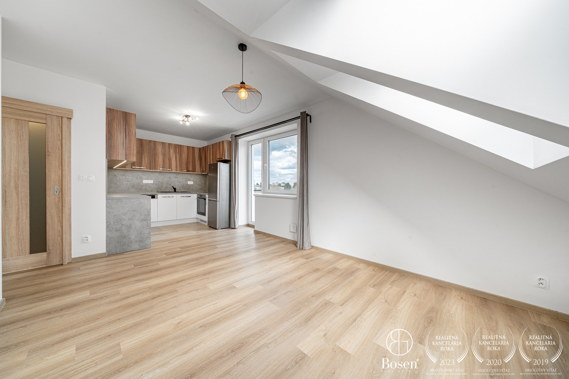DISPOZÍCIA: Vstupná chodba, kuchyňa spojená s presvetlenou obývacou izbou, spálňa, kúpeľňa so sprchovým kútom a samostatná toaleta.