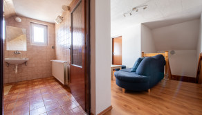 DISPOZÍCIA: Dom disponuje dvomi vstupmi – jedným priamo z garáže, kde sa nachádza letná kuchyňa so špajzou a kúpeľňou, a druhým vstupom z exteriéru na 1. nadzemné podlažie. Na 1. NP sa nachádza kuchyňa, chodba, kúpeľňa a dve samostatné izby. Podkrovie ponúka dve samostatné spálne so vstupom na spoločný balkón, kúpeľňu a menšiu miestnosť využiteľnú ako sklad, z ktorej je zároveň prístup na strechu.