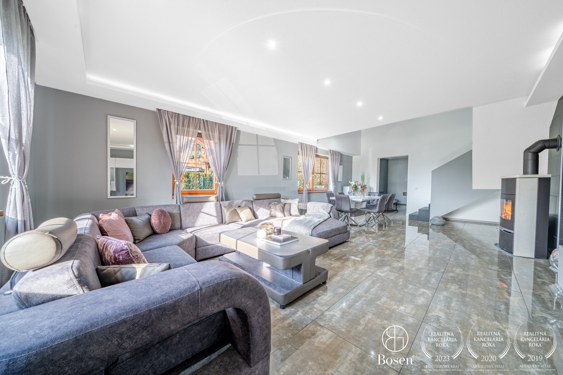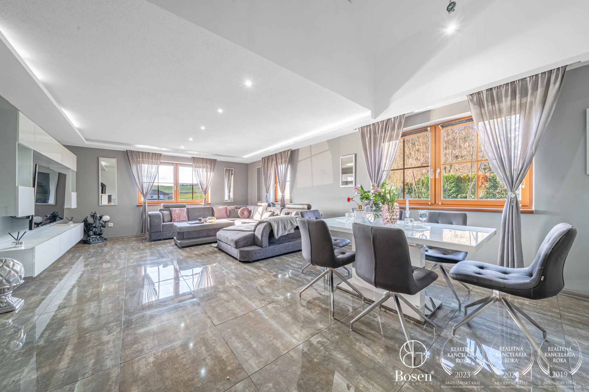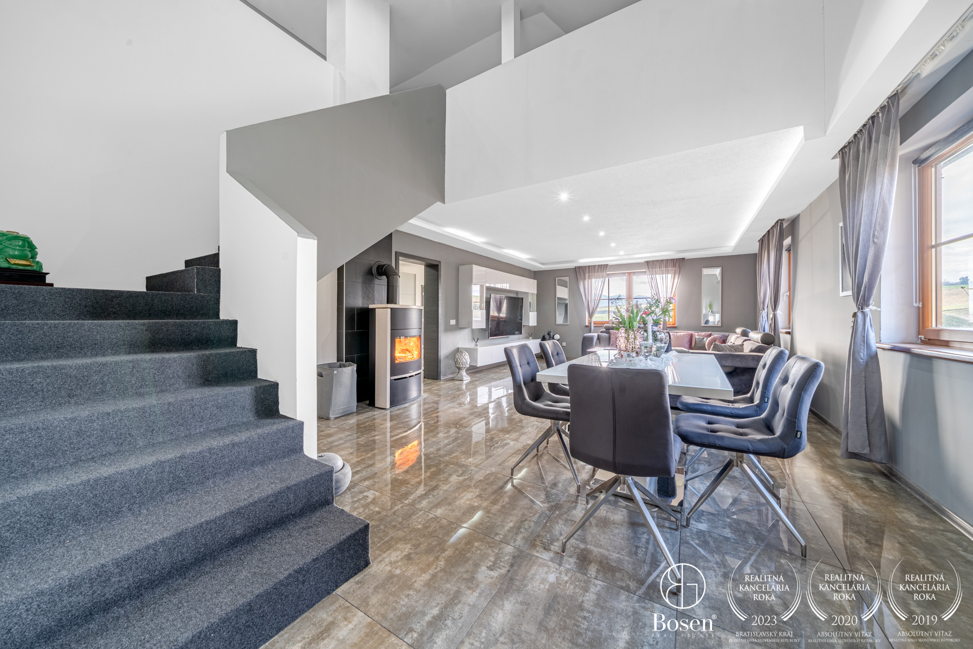 Realitná kancelária BOSEN Group Vám exkluzívne ponúka na predaj exkluzívny rodinný dom, ktorý spája veľkorysý priestor, kvalitné remeselné spracovanie a moderné technológie. Táto nadštandardná nehnuteľnosť, postavená v roku 2003 a komplexne modernizovaná v priebehu posledných 10 rokov, ponúka ideálne bývanie pre klienta, ktorý hľadá komfort, súkromie a prestíž. Dom je realizovaný v masívnej stavebnej konštrukcii, je plne podpivničený a rozprestiera sa na dvoch obytných podlažiach s celkovou úžitkovou plochou 247 m². Elegantná a premyslená dispozícia vytvára pocit vzdušnosti, svetla a harmónie.
