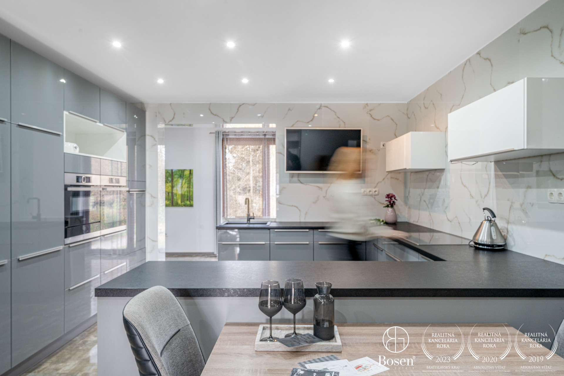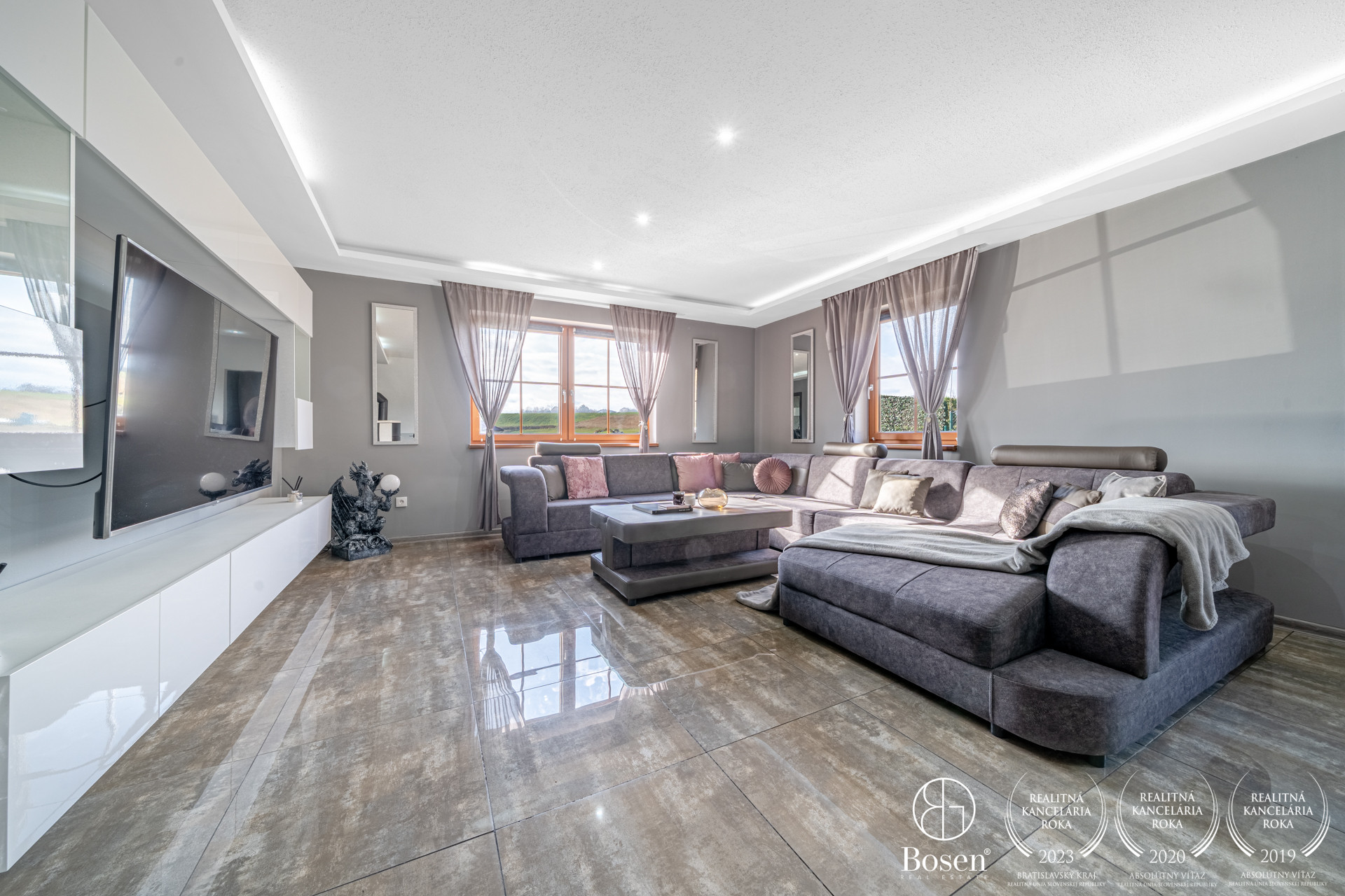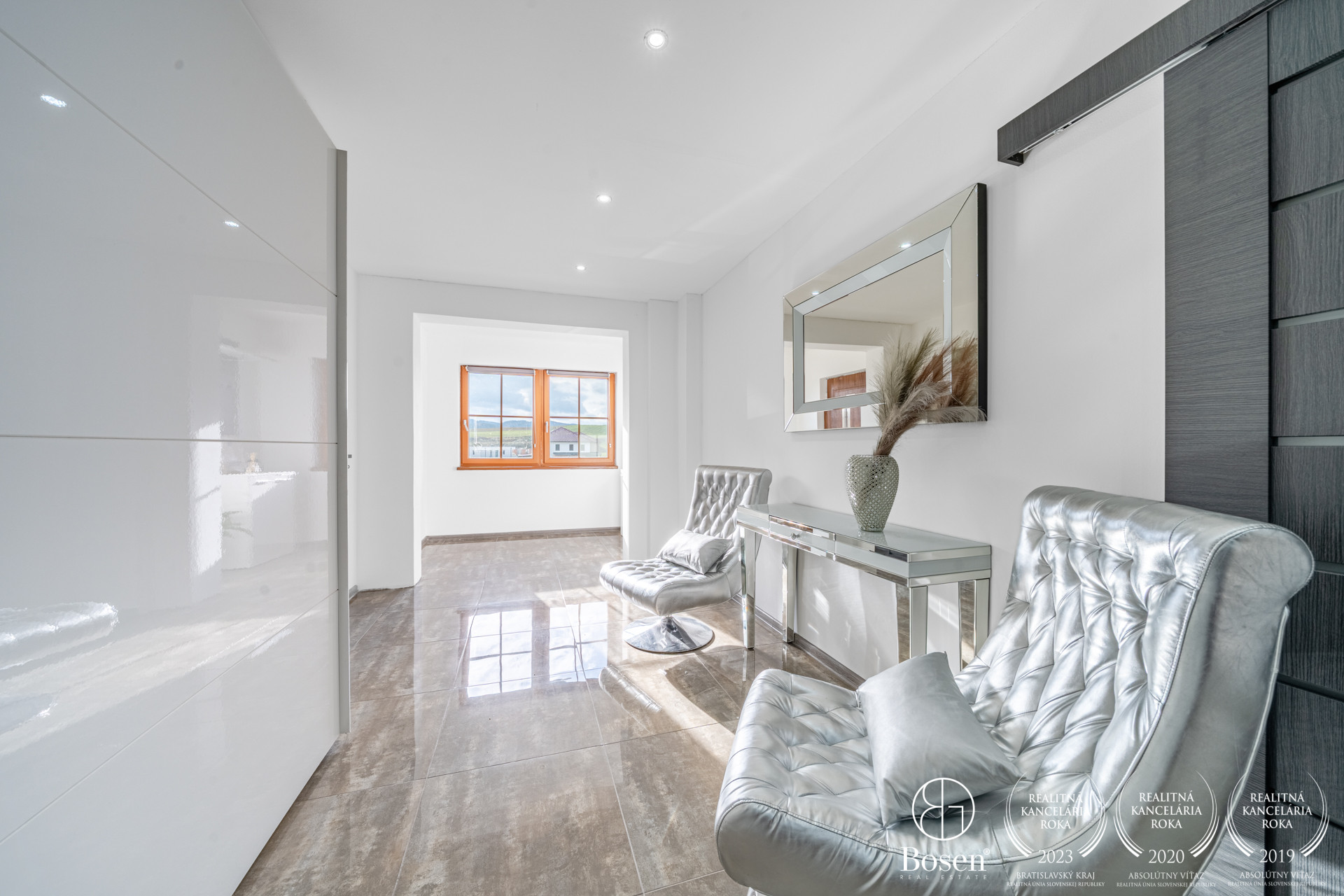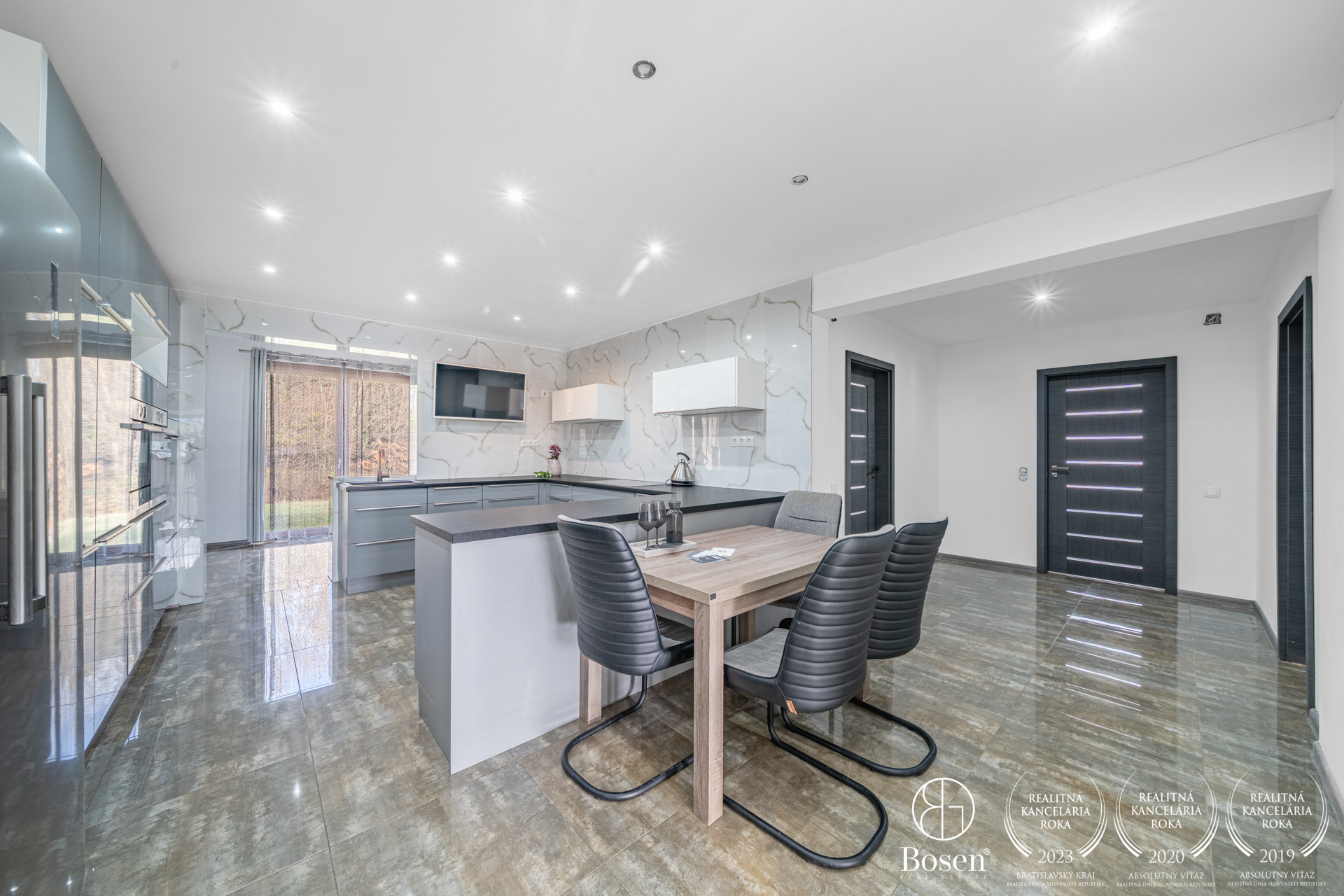 Realitná kancelária BOSEN Group Vám exkluzívne ponúka na predaj exkluzívny rodinný dom, ktorý spája veľkorysý priestor, kvalitné remeselné spracovanie a moderné technológie. Táto nadštandardná nehnuteľnosť, postavená v roku 2003 a komplexne modernizovaná v priebehu posledných 10 rokov, ponúka ideálne bývanie pre klienta, ktorý hľadá komfort, súkromie a prestíž. Dom je realizovaný v masívnej stavebnej konštrukcii, je plne podpivničený a rozprestiera sa na dvoch obytných podlažiach s celkovou úžitkovou plochou 247 m². Elegantná a premyslená dispozícia vytvára pocit vzdušnosti, svetla a harmónie.