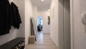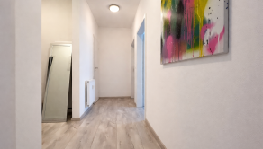 DISPOZÍCIA: Vstup do bytu tvorí priestranná chodba na ktorej je možnosť mať šatník. Na chodbe sa nachádza vstup do kúpeľne a oddeleného WC. Z chodby je možnosť prejsť do detskej izby, spálne, špajze, kuchyne s obývačkou s balkónom.