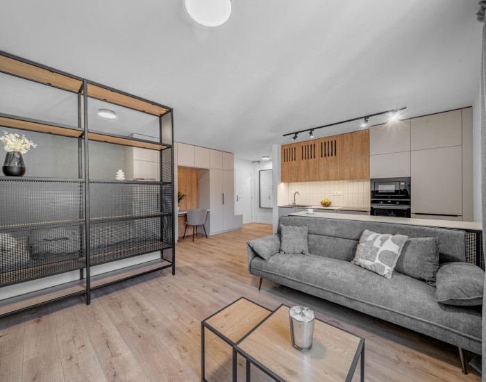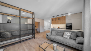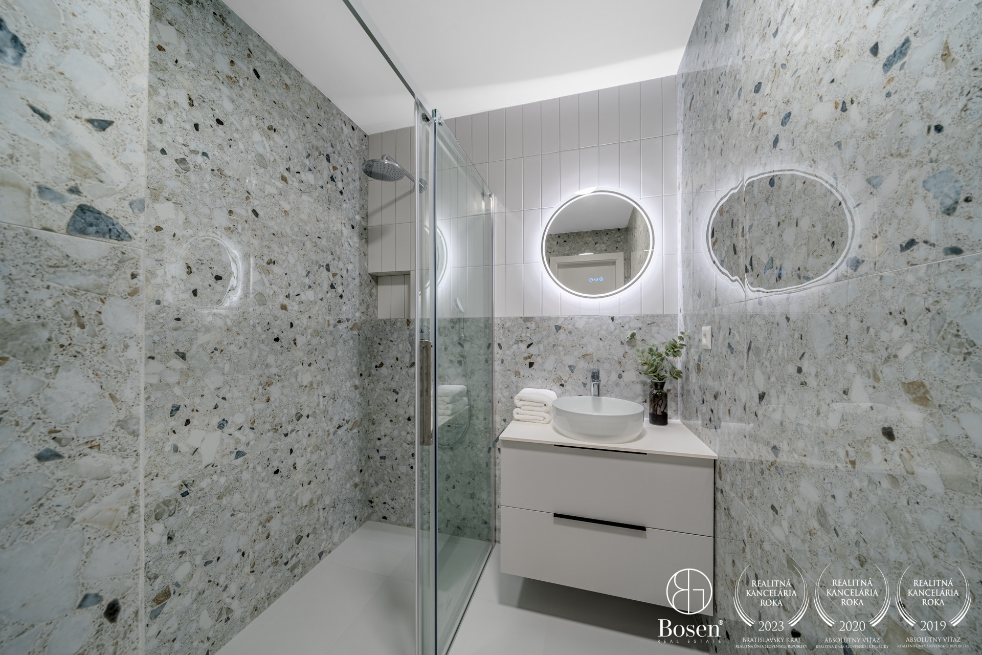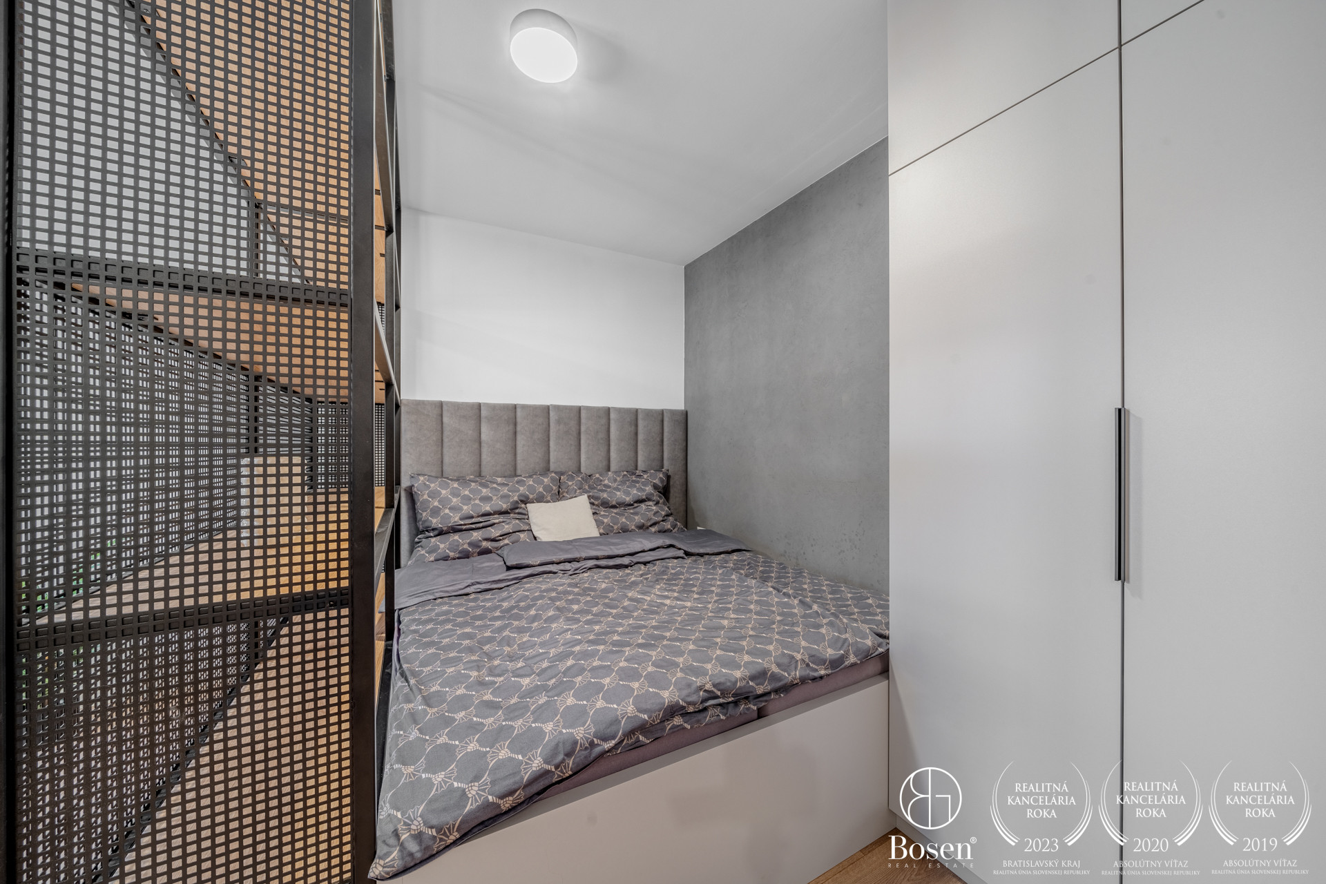 BYT: Byt má rozlohu 41,21 m2. Byt sa pýši využitím kvalitných materiálov, premysleným dizajnom a moderným technickým vybavením. Je kompletne zariadený nábytkom vyrobeným na mieru, čo zabezpečuje dostatok úložného priestoru. V byte je práčka, podlahové kúrenie, digestor, indukčná varná doska, umývačka riadu a TV. K bytu prislúcha aj pivnica.