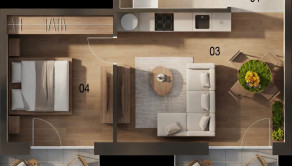 BYT K4.03: Celková rozloha 47,72 m² (byt 41,78 m² + terasa 5,94 m²). Byt sa nachádza na 4.poschodí, je svetlý a kvalitne vyhotovený.