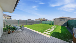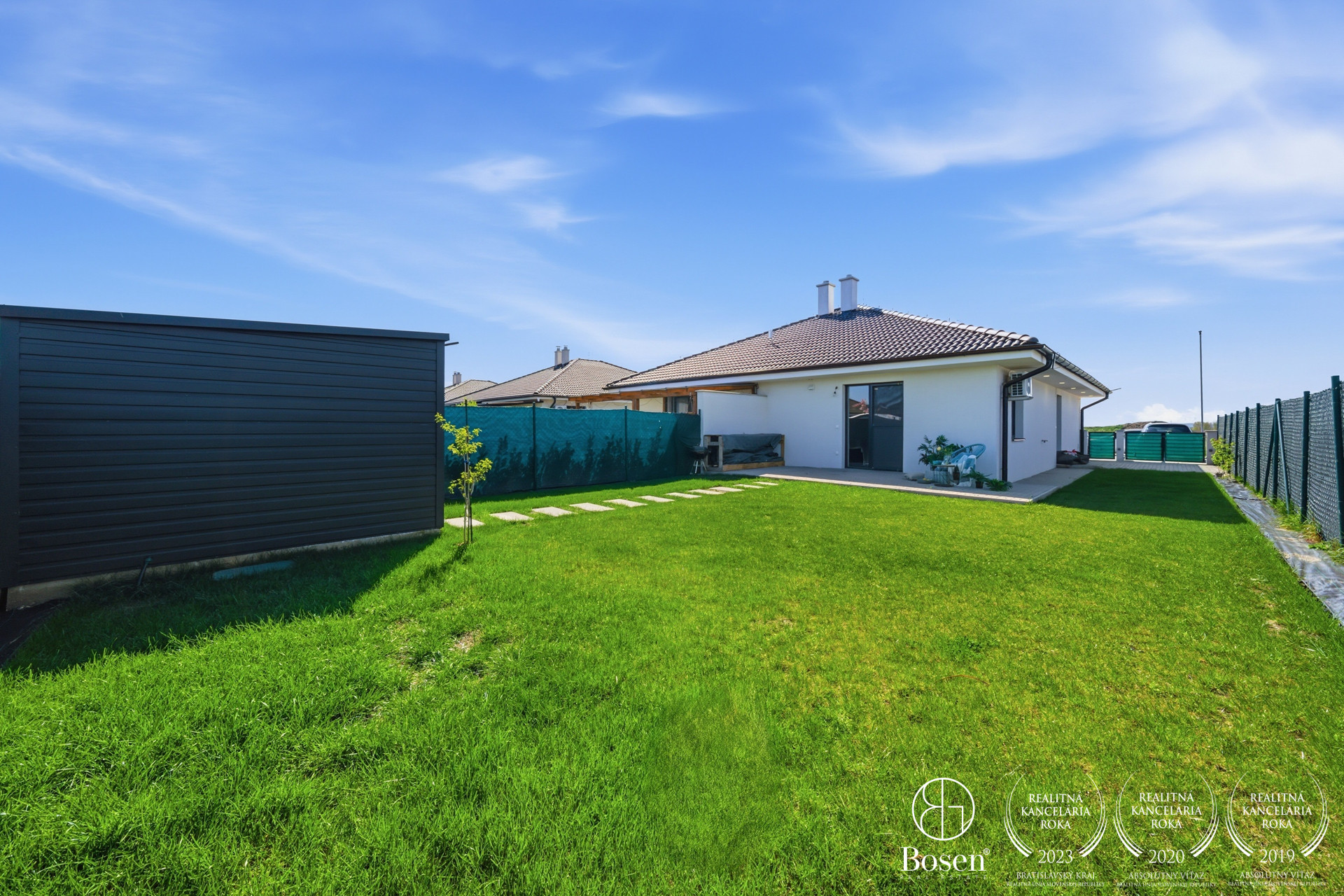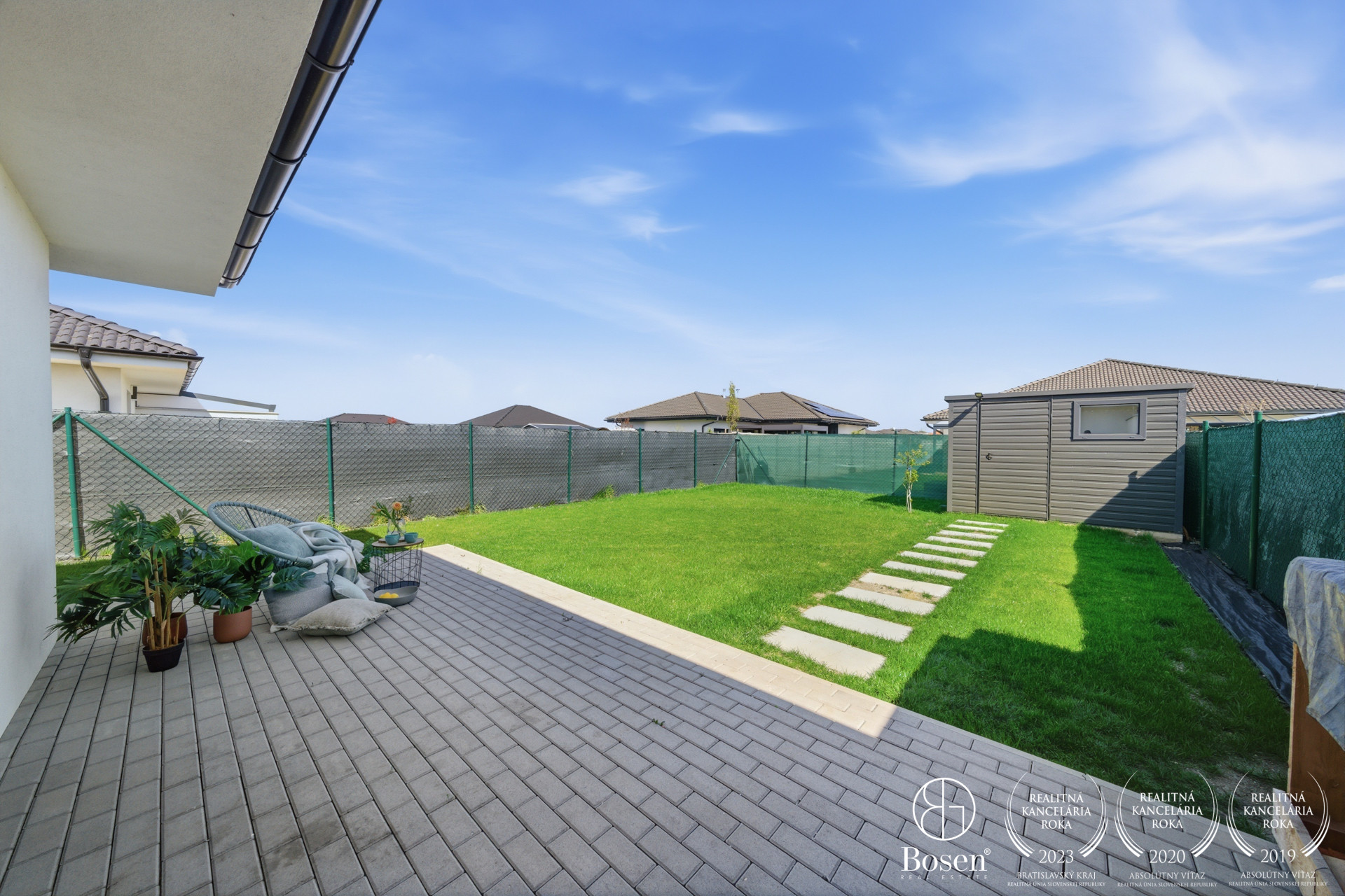 DOM: K domu prislúcha upravená záhrada o výmere 266 m² so záhradným domčekom, v ktorom sa nachádza studňa. Na pozemku je automatická závlaha a kompletné oplotenie. K dispozícii sú tri parkovacie miesta – jedno vo dvore a dve pred domom. Na terase s výmerou 18 m² si môžete užívať pokojné chvíle s výhľadom do záhrady.