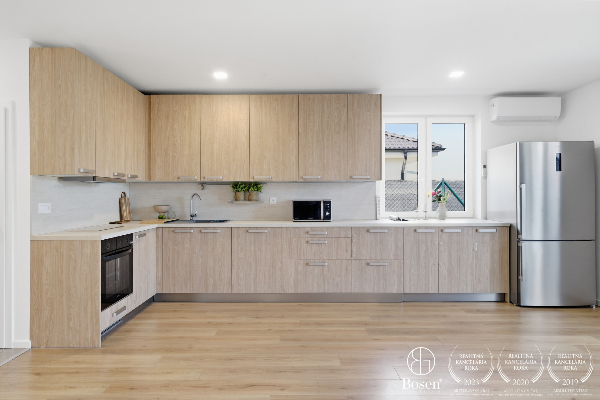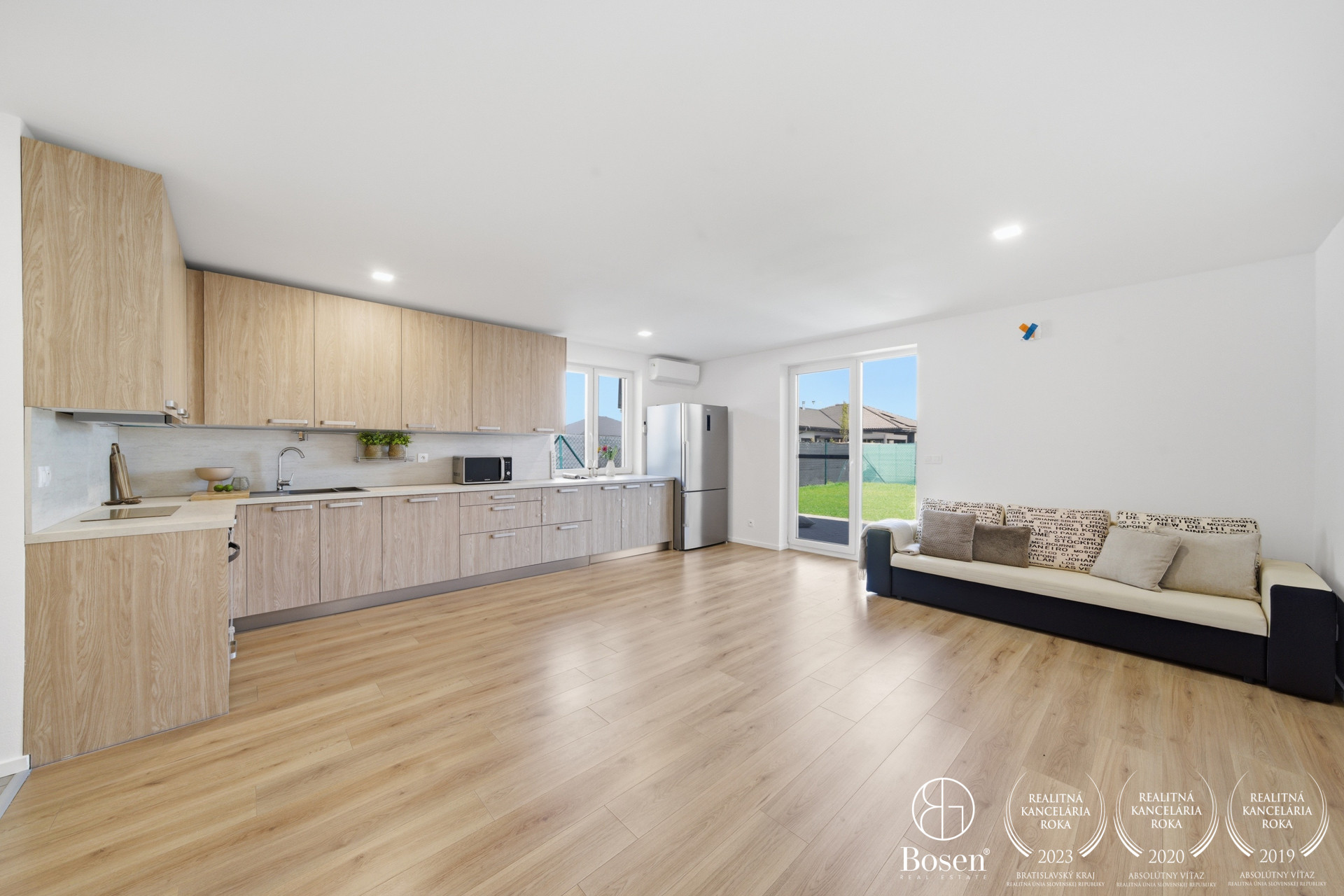 Realitná kancelária Bosen Group Vám exkluzívne ponúka na prenájom priestranný a svetlý 3‑izbový rodinný dom (dvojdom) v tichej časti obce Miloslavov – Liesková ulica.