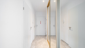 Die Böden sind im glamourösen Stil gehalten – es handelt sich um hochwertige italienische Fliesen, die sehr elegant wirken. In der gesamten Wohnung befinden sich große Einbauschränke (Rolldor-System) in Kombination mit goldenen Elementen, die den eleganten Stil zusätzlich unterstreichen. Die Wohnung bietet ausreichend Stauraum.