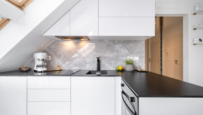Die Wohnung befindet sich in Hainburg an der Donau in Österreich, direkt unter der historischen Burg und nur 15 Minuten von Bratislava entfernt.