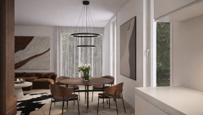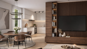 Interiér – holodom = obvodové steny a priečky, dokončené všetky rozvody elektriky, vody, odpadu, tepelné čerpadlo, podlahové kúrenie, omietky, biela maľovka, predpríprava na exteriérové žaluzie, príprava na klimatizáciu, príprava na kamerový systém a zabezpečovacie zariadenie (alarm).