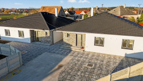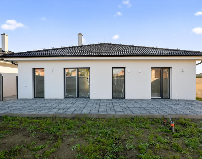 RODINNÝ DOM: Dispozične výborne riešený samostatne stojaci bungalov bol postavený v roku 2025 a kolaudácia tohto rodinného domu je plánovaná 01/2026. Dom je postavený z kvalitných materiálov. Obvodové murivo a vnútorné priečky pálená tehla, plastové okná s izolačným 3 sklom, betónová škridla, zateplenie 20 cm polystyrén odvodové murivo, strecha je zateplená striekanou izoláciou. Predpríprava na klimatizáciu a vonkajšie elektrické žalúzie.