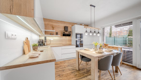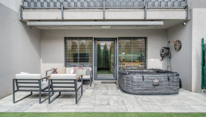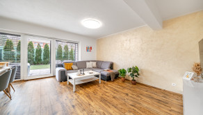 BYT: výmera bytu je 78m2, do bytu je úplne bezbariérový prístup. Byt pozostáva z chodby, dvoch spální, kuchyne prepojenej s obývačkou odkiaľ je vstup na vlastnú predzáhradku, kúpeľne a samostatného wc. Byt je zariadený nábytkom na mieru, osadené sú bezpečnostné vstupné dvere, na oknách sú namontované elektrické žalúzie a má vlastné elektrické vykurovanie (podlahové) s termostatom v každej izbe zvlášť. Príjemnú atmosféru navodzujú aj benátske stierky. Čisté línie a neutrálne farby Vám umožnia dotvoriť domov podľa seba a bez ďaľšej veľkej investície.