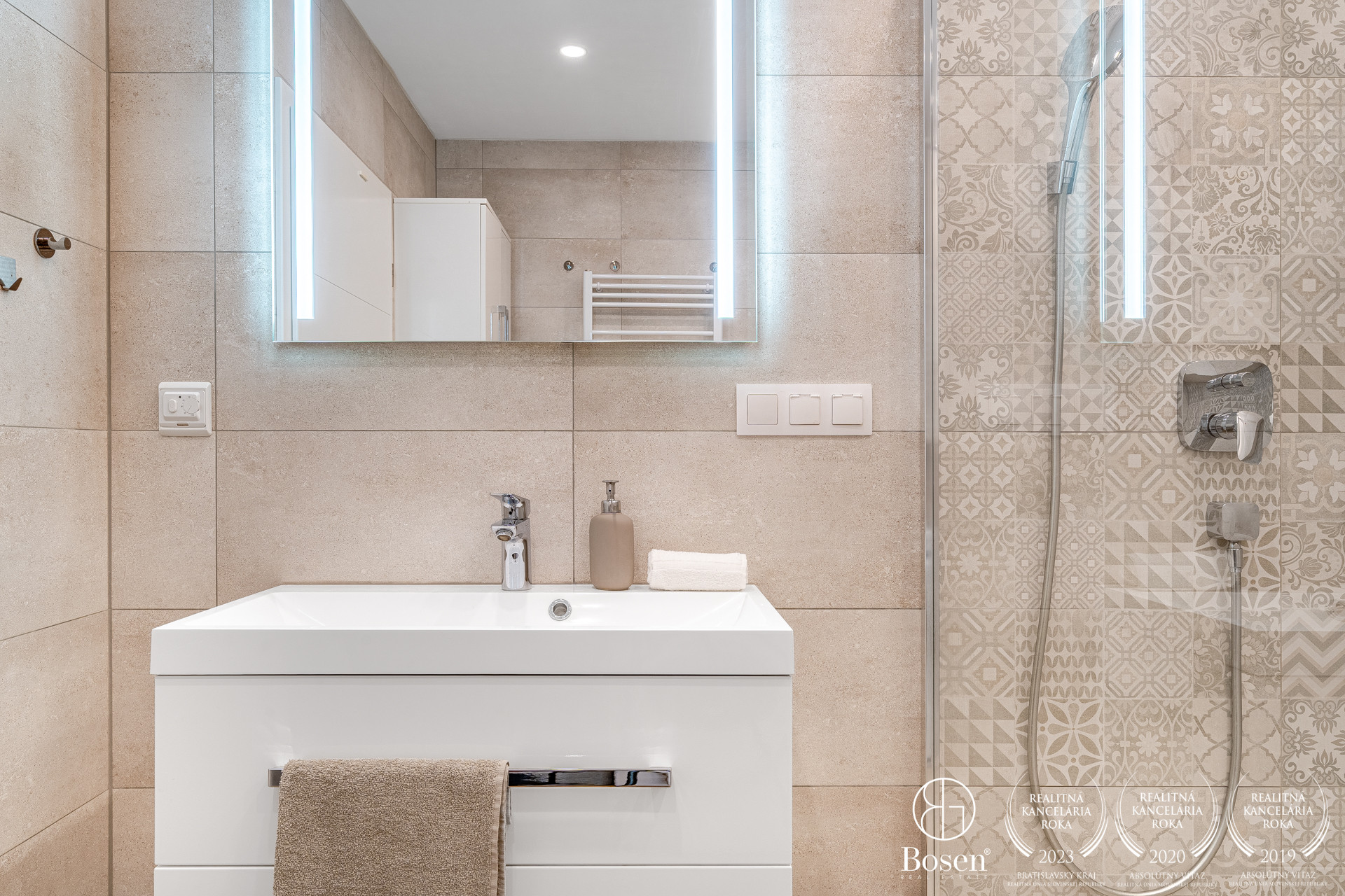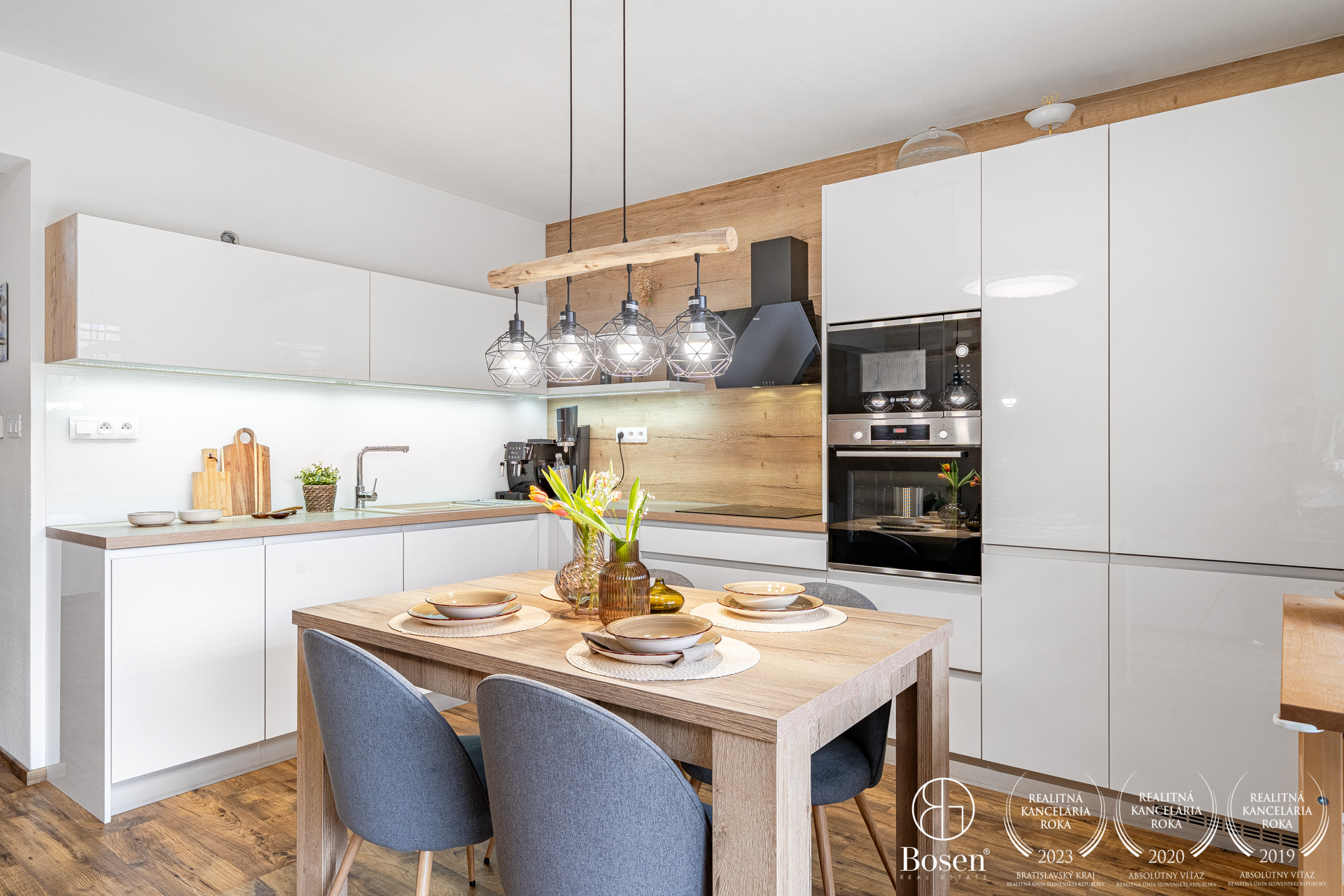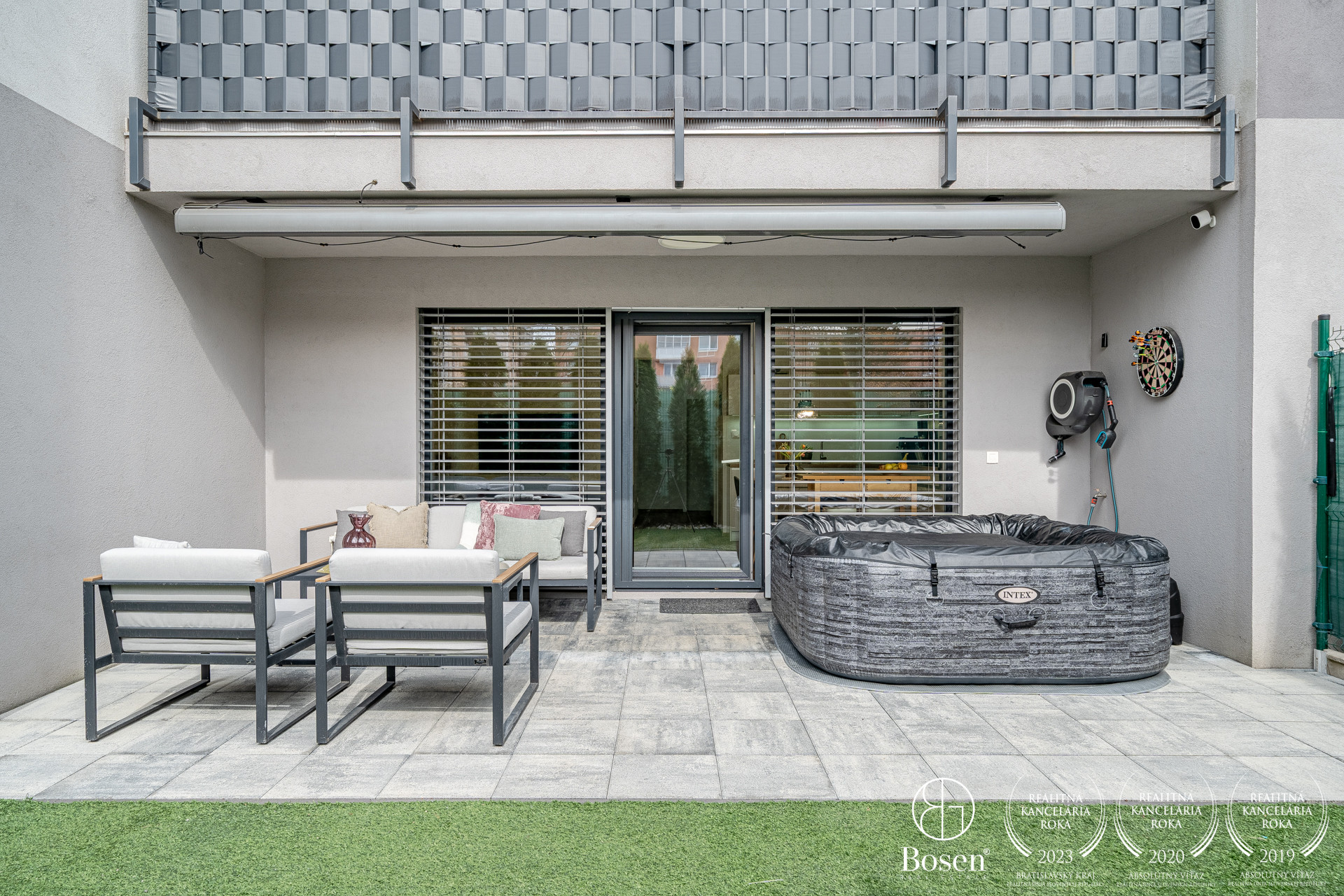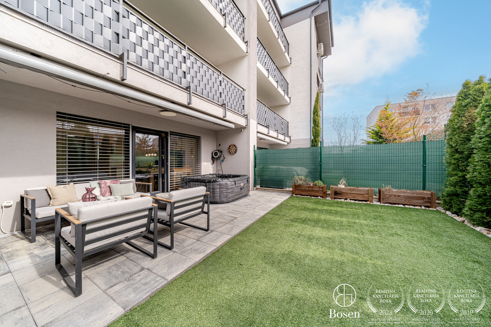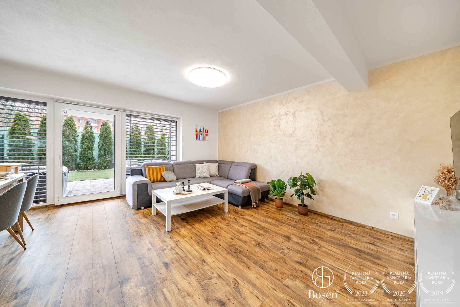 Bosen Group Vám ponúka na predaj kompletne zariadený 3 izbový byt v 7 ročnej novostavbe, s vlastnou predzáhradkou a vyhradeným parkovacím miestom v uzatvorenom dvore.