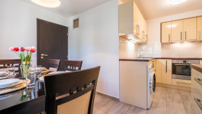 ŠTANDARD BYTU: Kuchynská linka na mieru, práčka, základné kuchynské vybavenie, nová chladnička, nová umývačka riadu, sedacia súprava, kotol na teplu vodu, TV, bezpečnostné dvere.