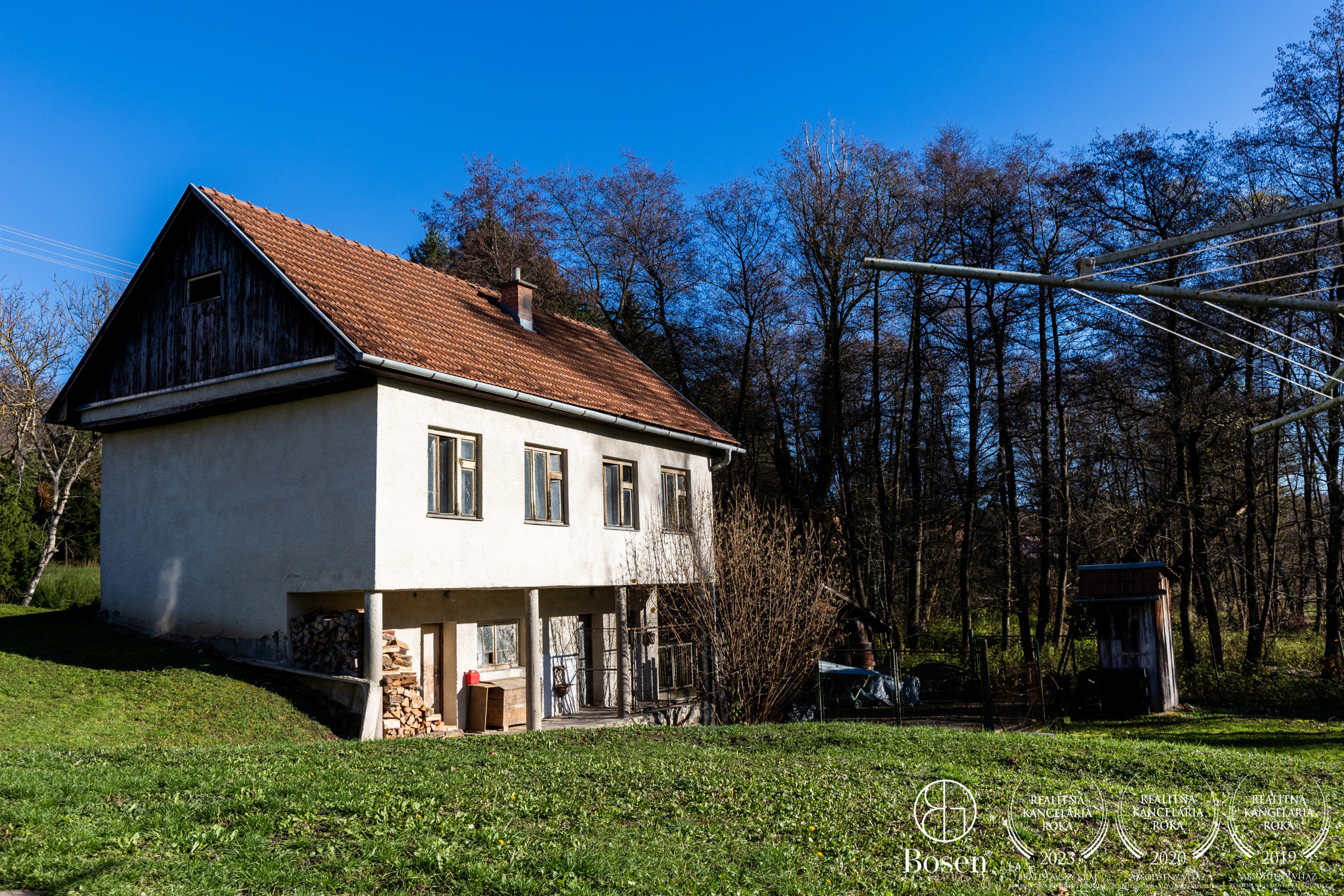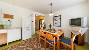 Suterén: kotolňa (plyn + tuhé palivo), práčovňa, sklad, izba, výstup do záhrady – vhodné na vytvorenie apartmánu.