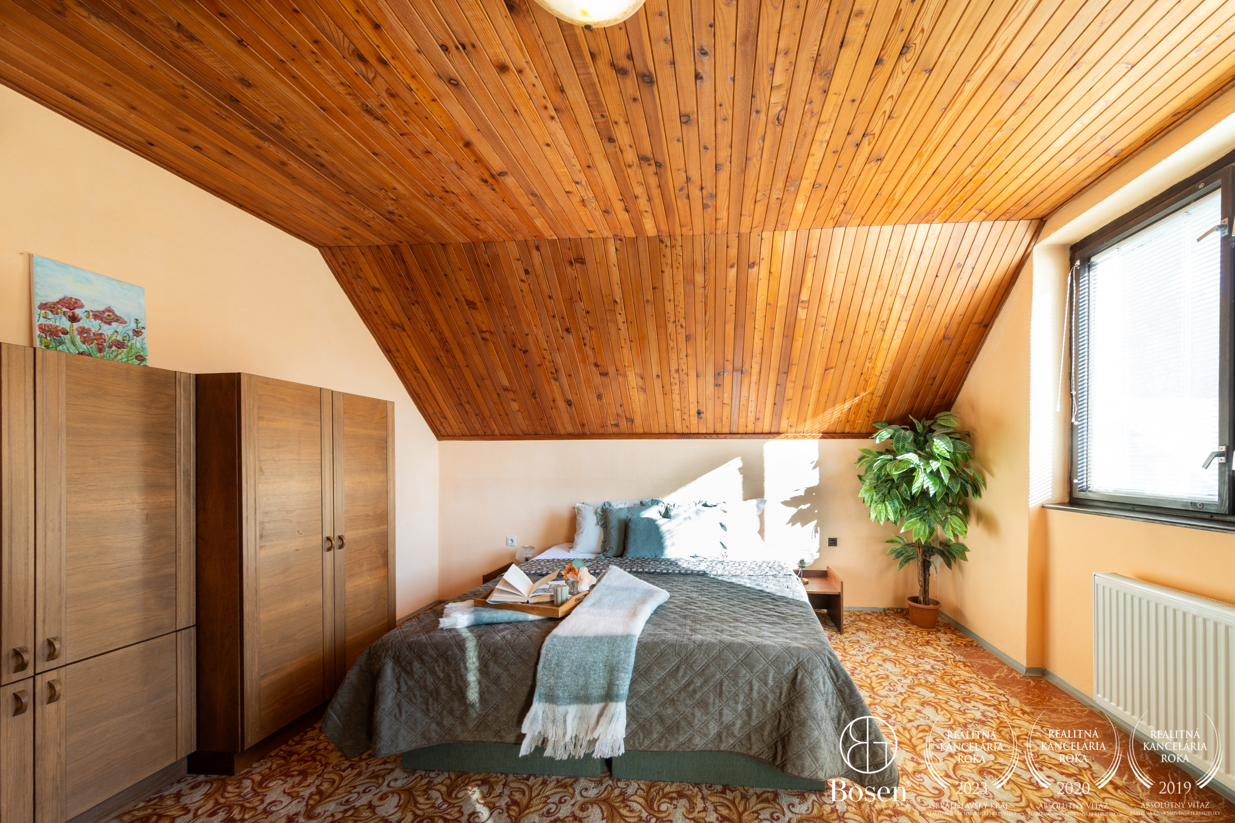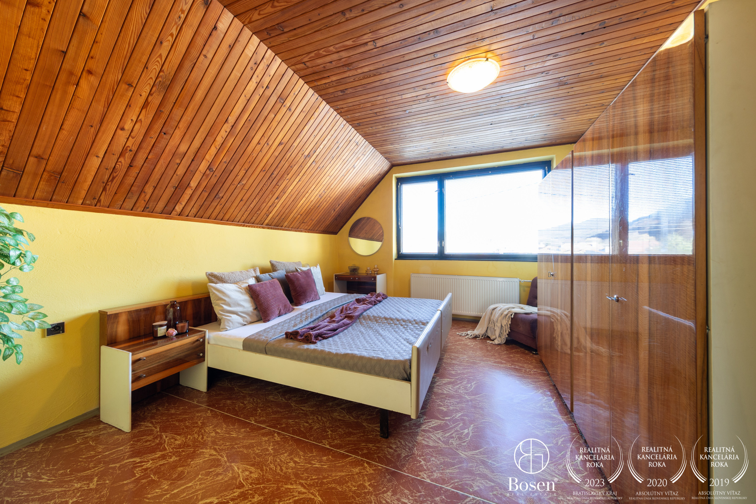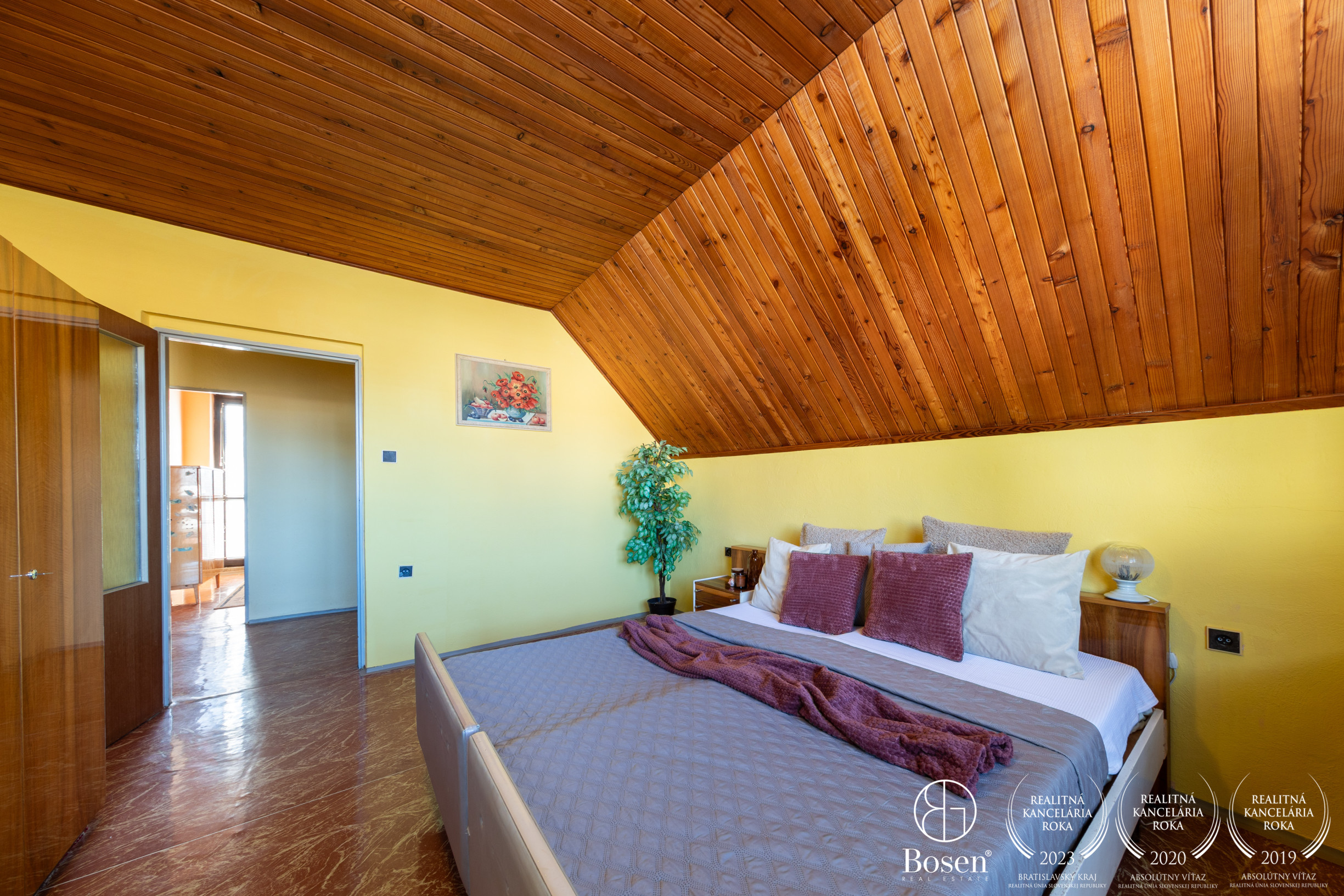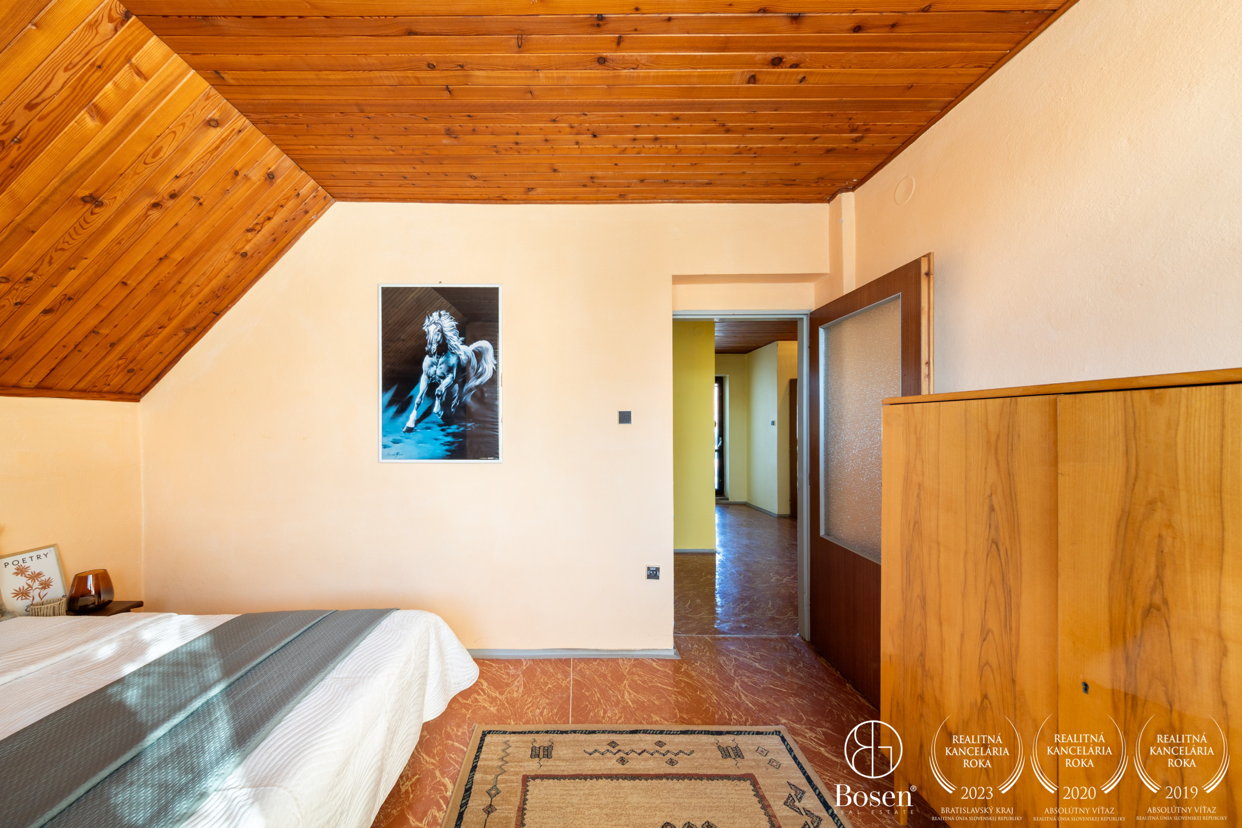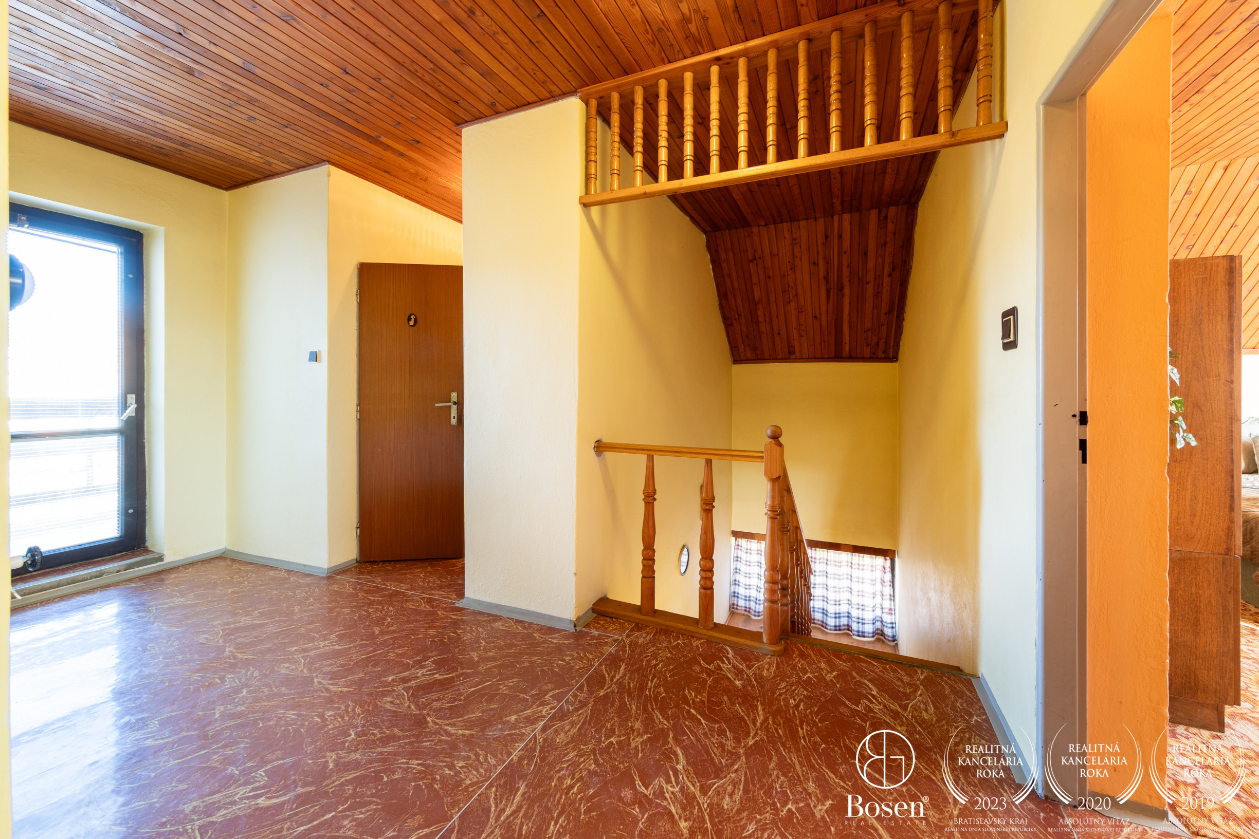 Podkrovie: 3 izby, kúpeľňa, WC, šatník, dva balkóny.