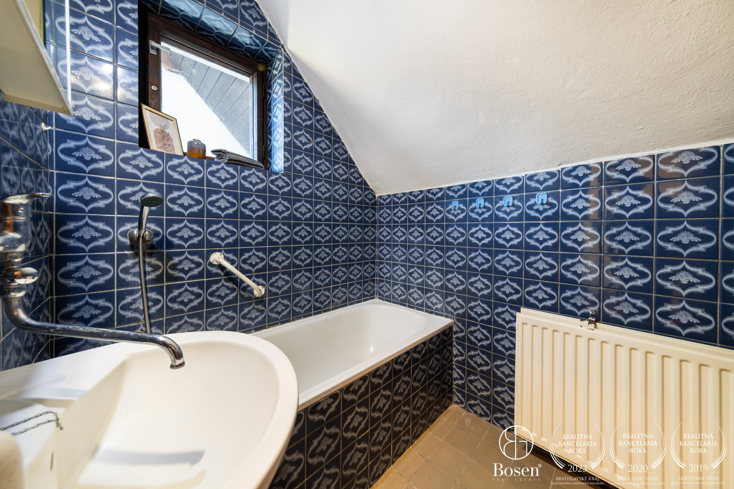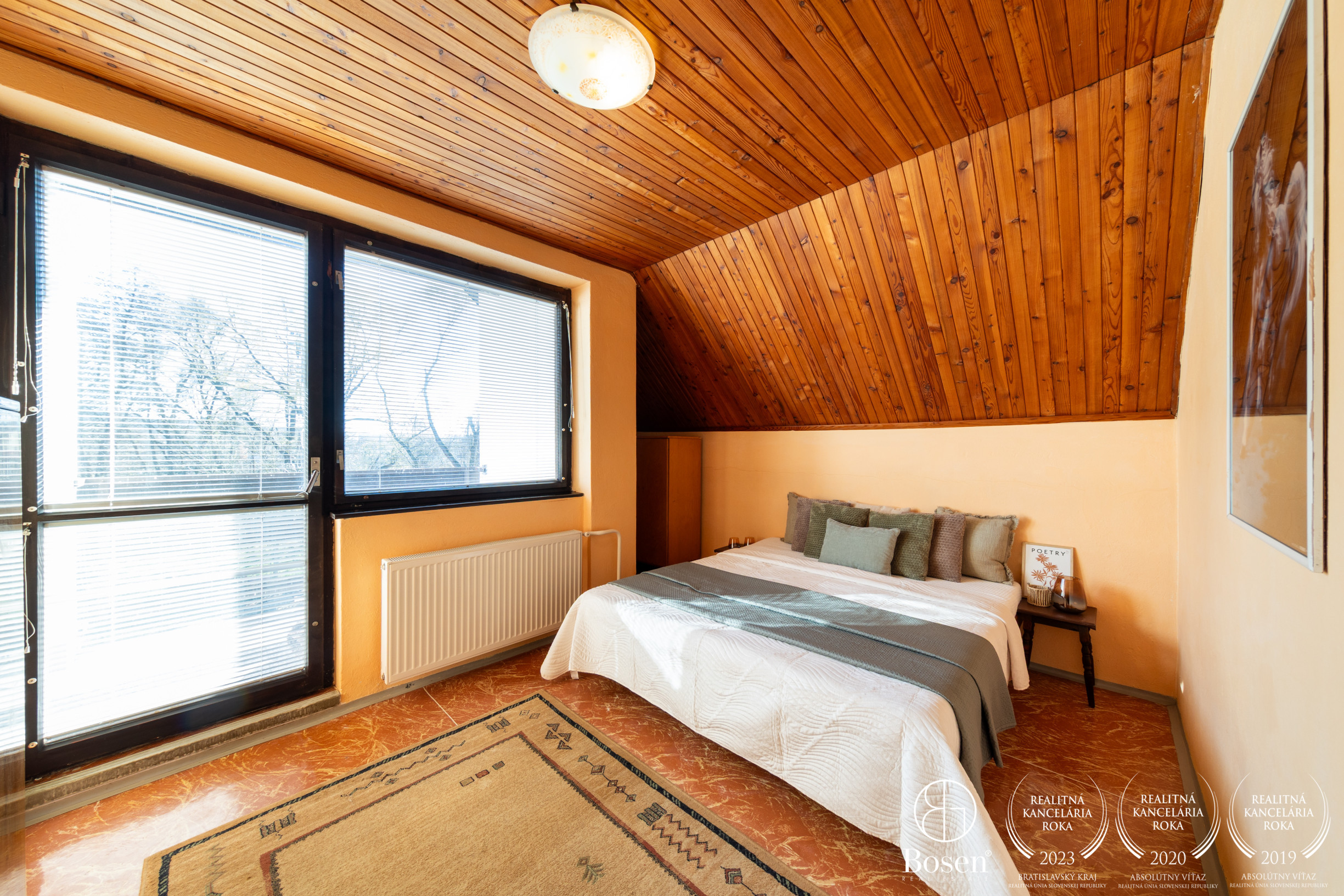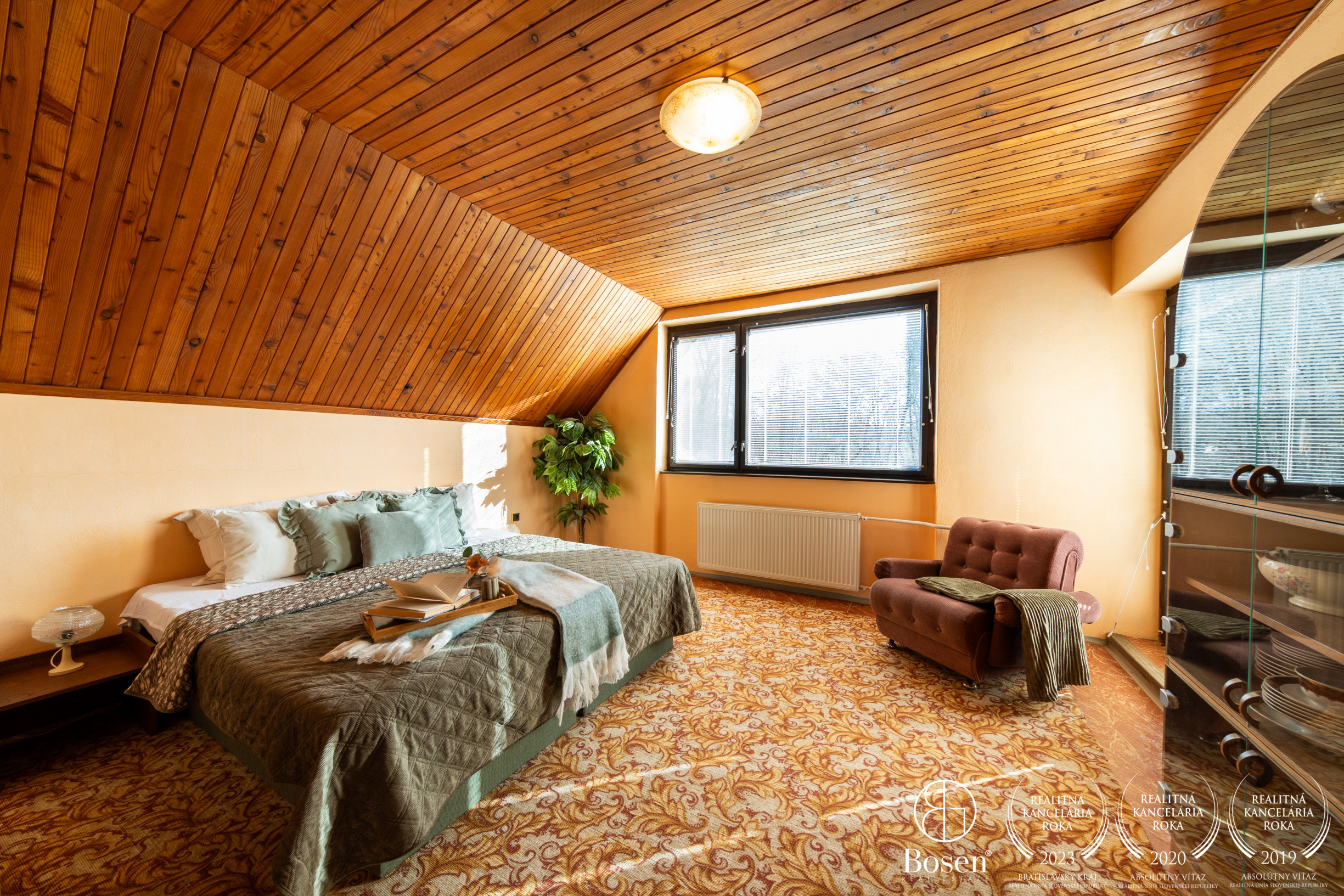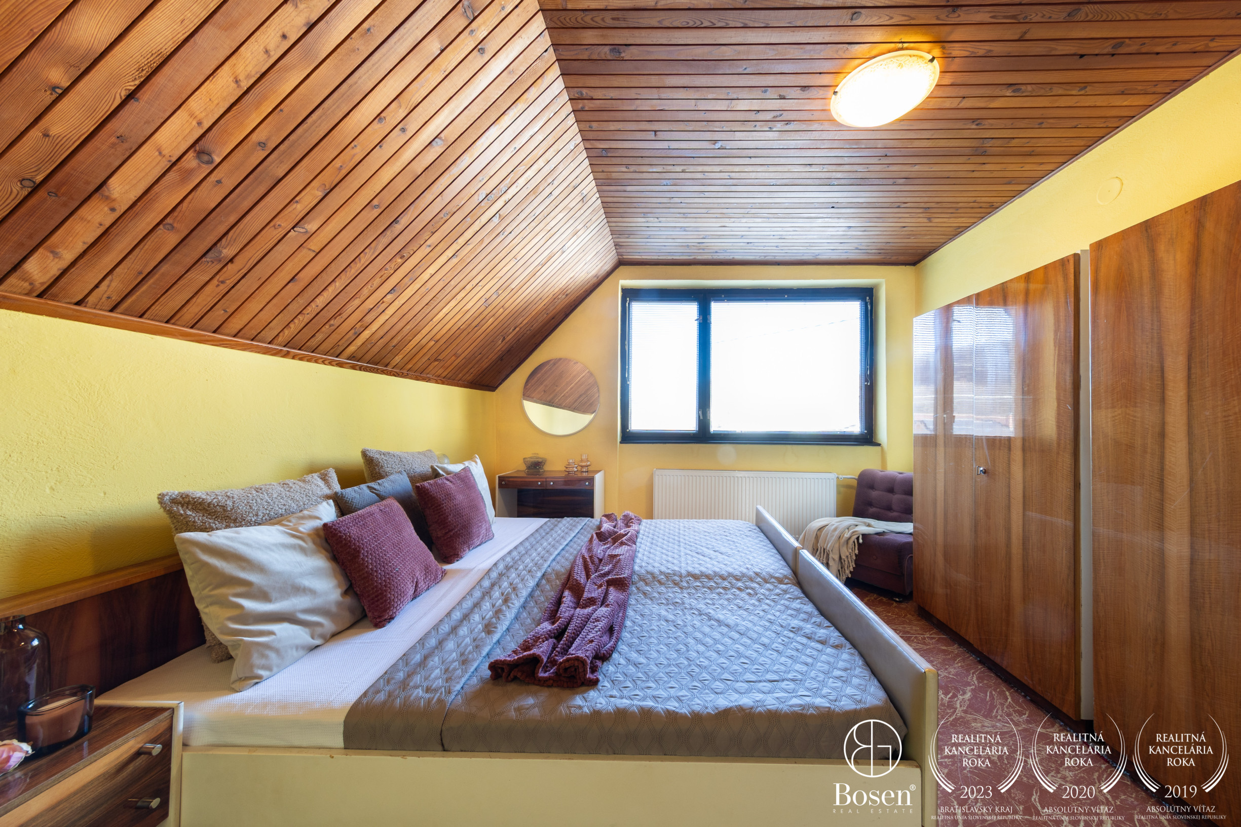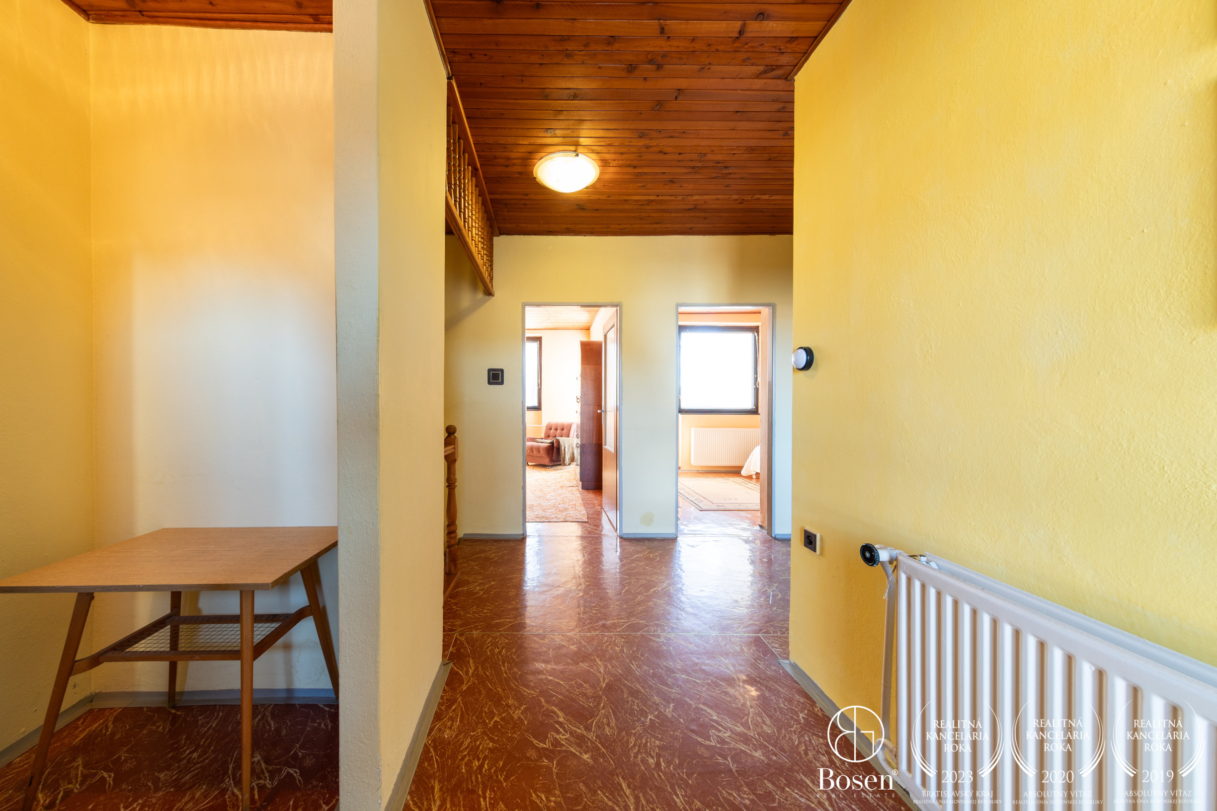 Podkrovie: 3 izby, kúpeľňa, WC, šatník, dva balkóny.