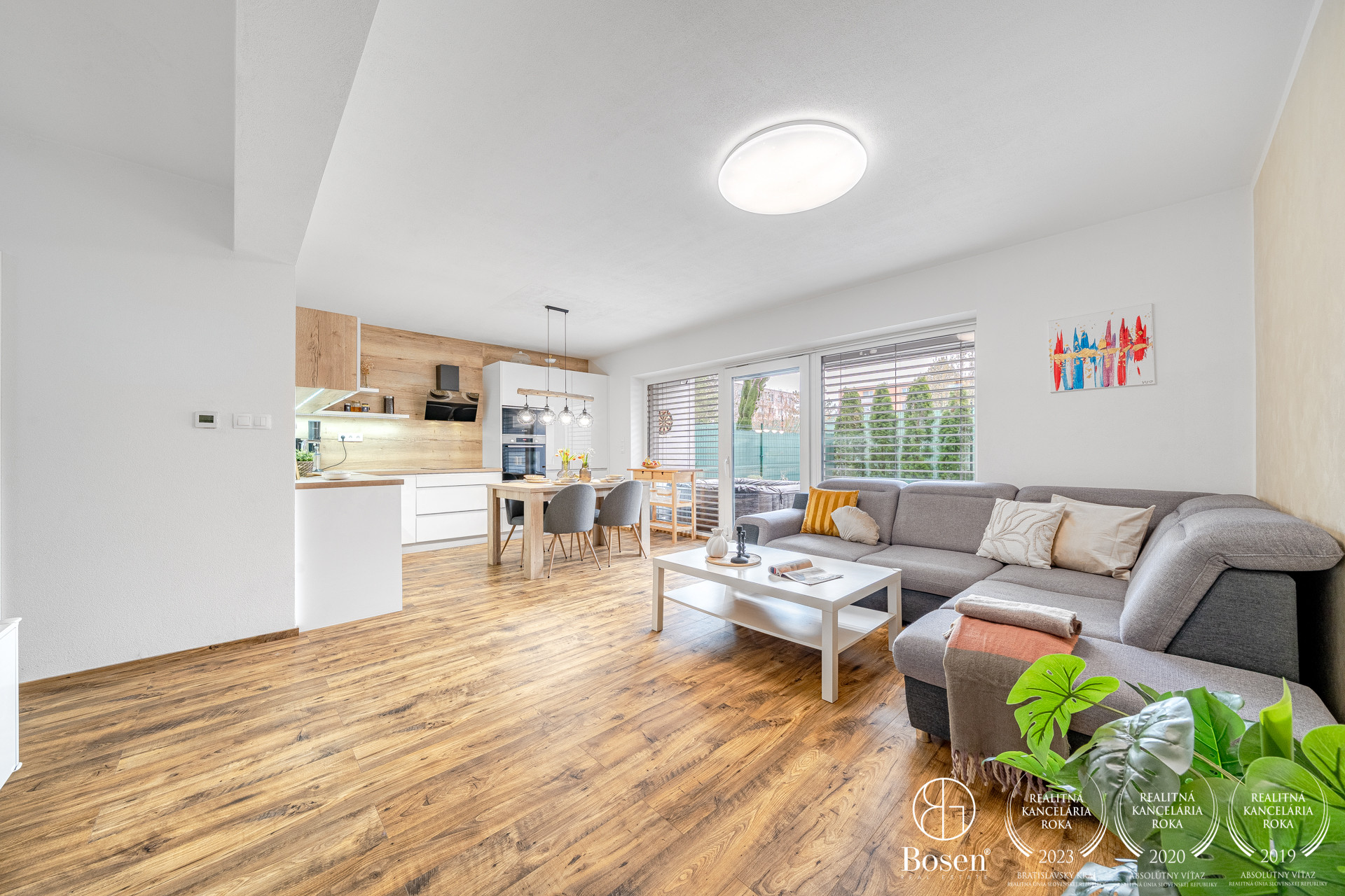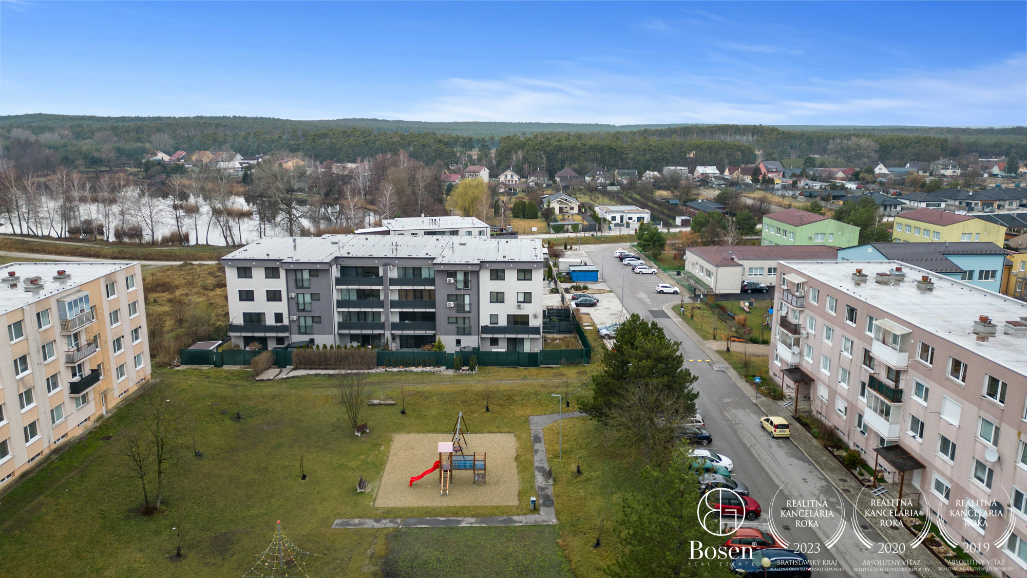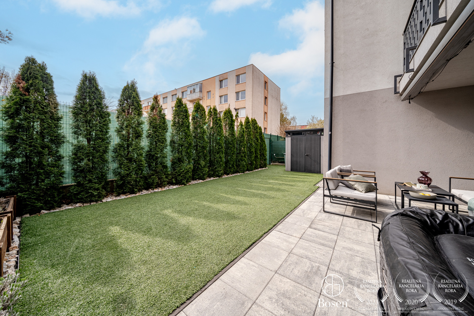 Bosen Group Vám ponúka na predaj kompletne zariadený 3 izbový byt v 7 ročnej novostavbe, s vlastnou predzáhradkou a vyhradeným parkovacím miestom v uzatvorenom dvore.