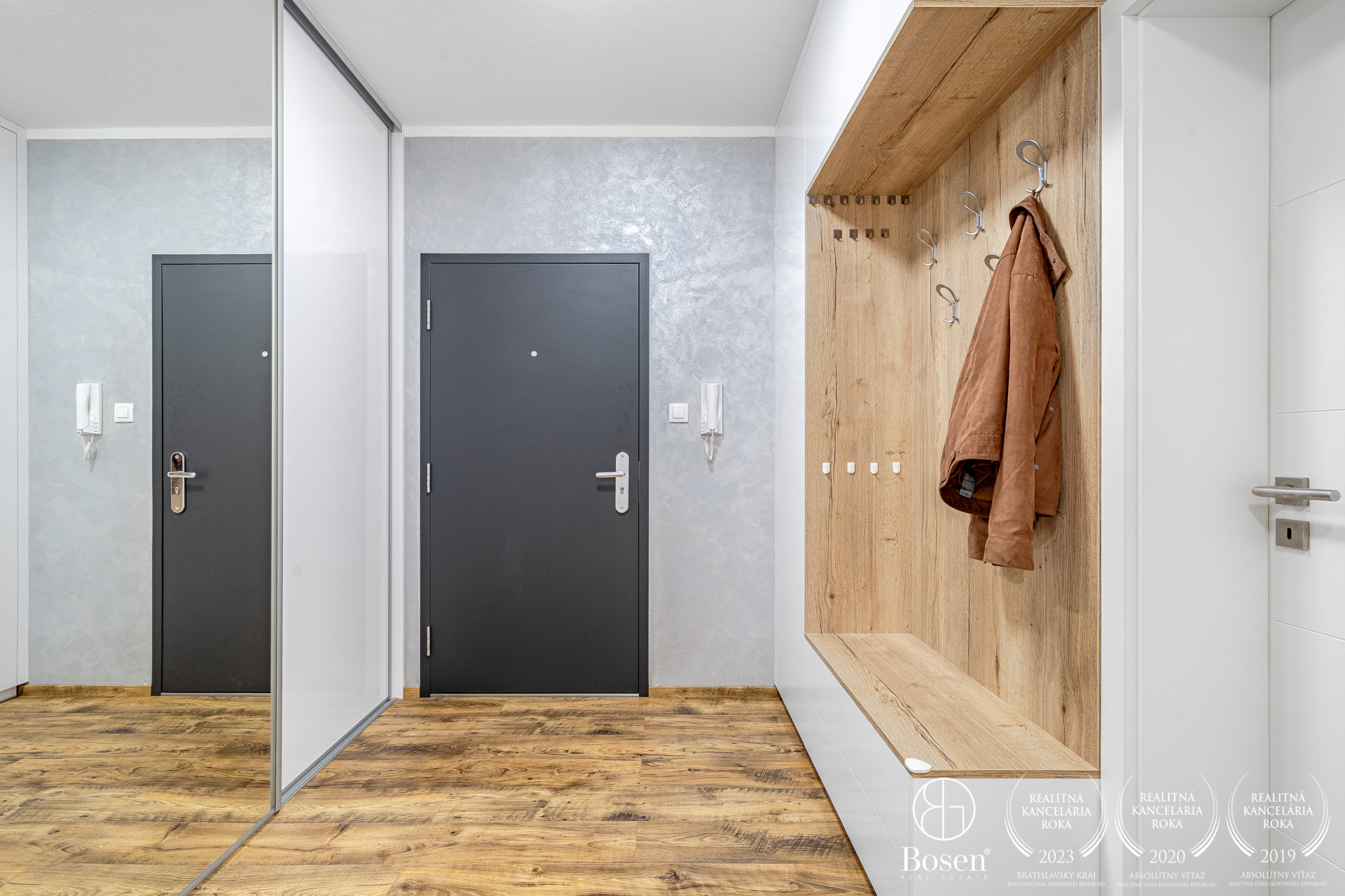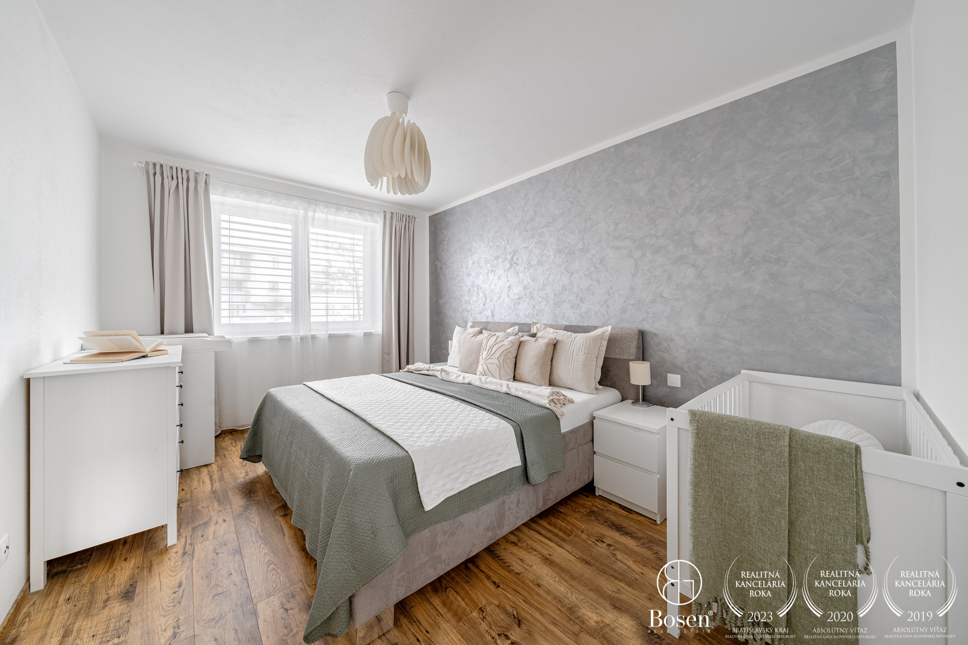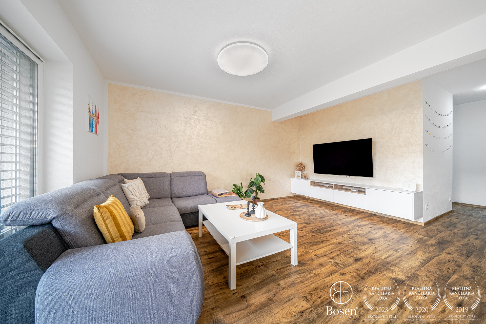 Bosen Group Vám ponúka na predaj kompletne zariadený 3 izbový byt v 7 ročnej novostavbe, s vlastnou predzáhradkou a vyhradeným parkovacím miestom v uzatvorenom dvore.