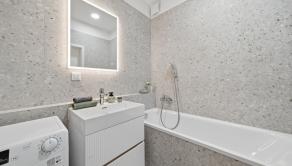 BYT: Byt sa nachádza na 4. poschodí z 5 v modernom bytovom dome s výťahom. Celková výmera bytu je 56,05 m² + balkón o výmere 4,53 m². Ide o úplne novú nehnuteľnosť pripravenú na prvé bývanie. Byt je voľný ihneď a je vhodný pre jednotlivca alebo pár bez domácich zvierat.
