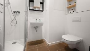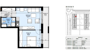 DISPOZÍCIA: Byt pozostáva zo vstupnej chodby, obývacej izby spojenej s kuchynskou a jedálenskou časťou, spálne, kúpeľne so sprchovým kútom a toaletou. Výstup na loggiu s orientáciou do vnútrobloku je z obývacej izby aj zo spálne.