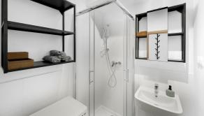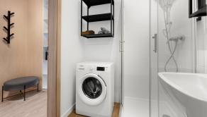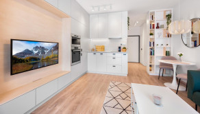 ZARIADENIE: Byt sa prenajíma kompletne a štýlovo zariadený. Súčasťou zariadenia sú: kuchynská linka s elektrickou rúrou, sklokeramickou varnou doskou, digestorom, mikrovlnkou a umývačkou riadu. Súčasťou je aj chladnička s mrazničkou. V jedálenskej časti je k dispozícii stôl s dvomi stoličkami. V obývacej izbe je dizajnový gauč, konferenčný stolík, TV a lampa. V spálni sa nachádza vstavaná skriňa, posteľ a dva nočné stolíky. Kúpeľňa je kompletne vybavená sanitou, skrinkou pod umývadlo, zrkadlom a práčkou.