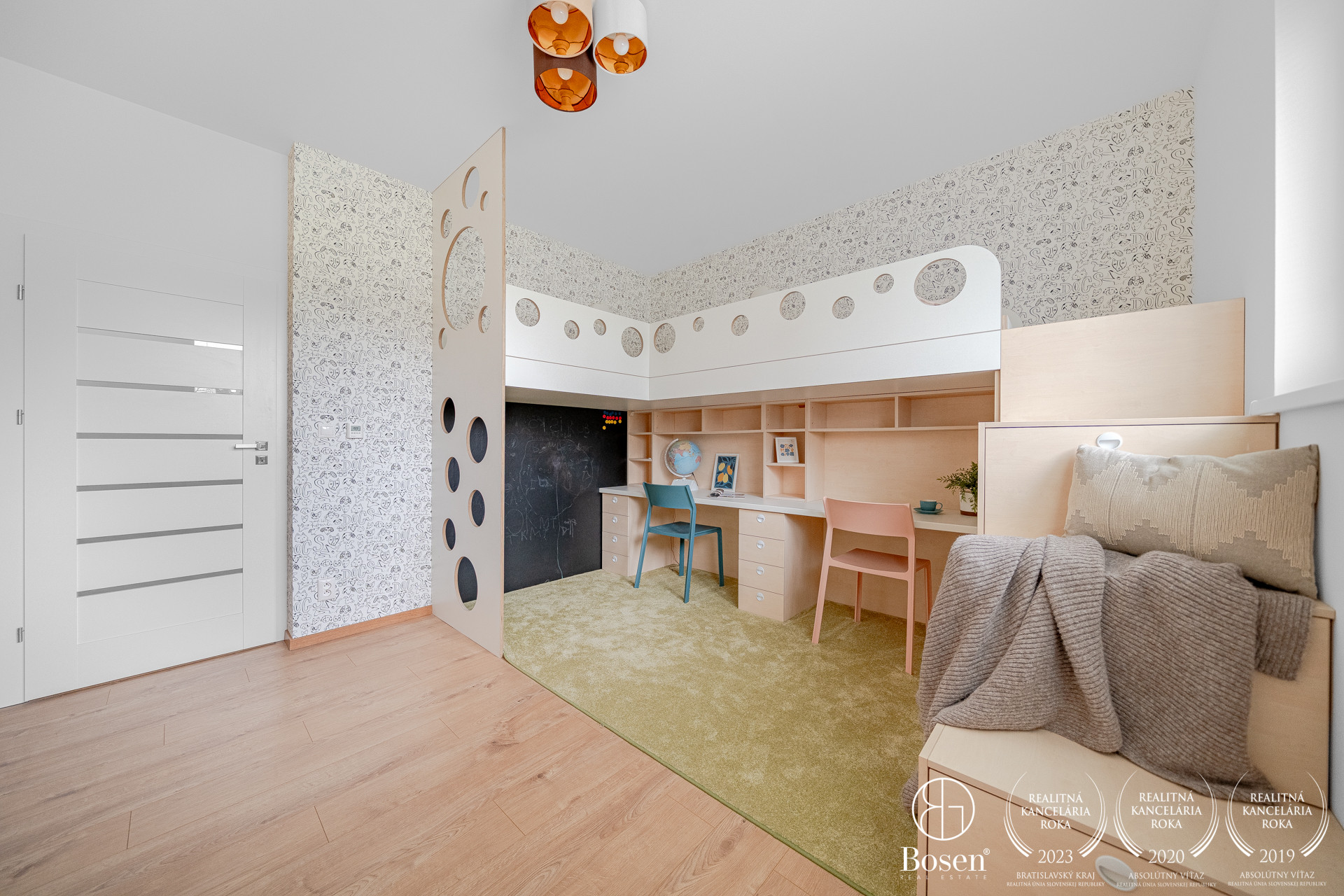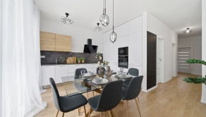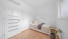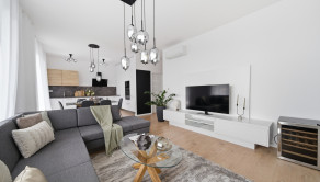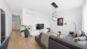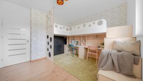 DISPOZÍCIA: Po vstupe do bytu sa ocitnete v predsieni, z ktorej je priamy vstup do prvej izby, vhodnej ako detská izba alebo pracovňa. Pokračovaním ďalej sa pred vami nachádza druhá samostatná detská izba. V centrálnej časti bytu je situovaná samostatná kúpeľňa a oddelené WC. Na ľavej strane sa nachádza priestranná spálňa. Dominantou bytu je veľkorysá denná časť – obývacia izba prepojená s kuchyňou, z ktorej je priamy výstup na predzáhradku.