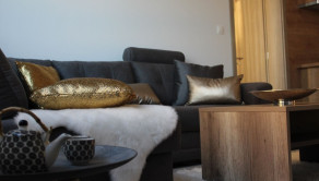 DISPOZÍCIA: Byt pozostáva z obývacej izby spojenej s kuchynskou časťou, spálne s manželskou posteľou a výstupom na balkón, kúpeľne s vaňou a vstupnej chodby.