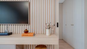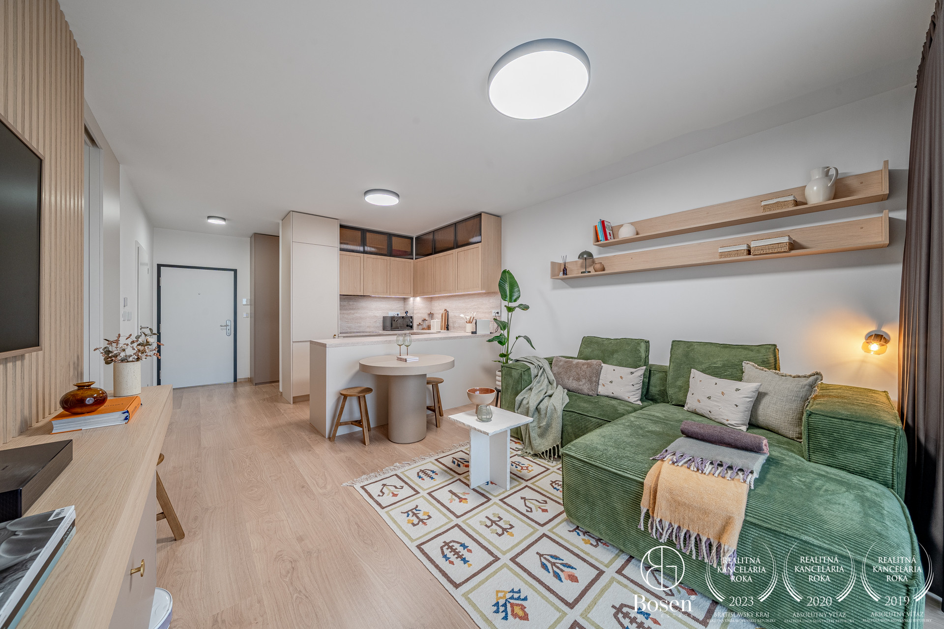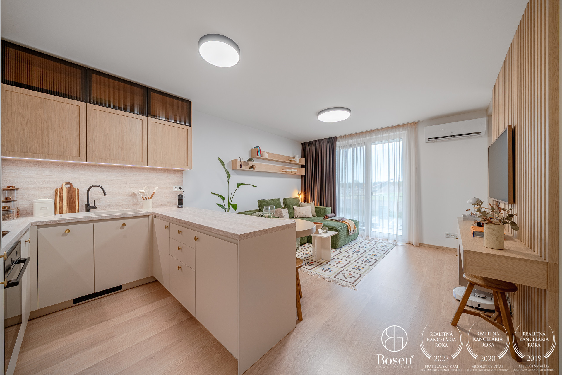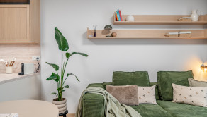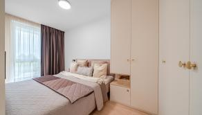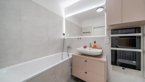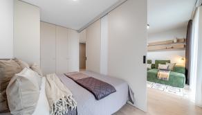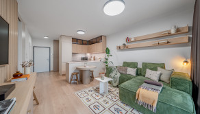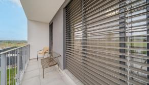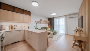 ZARIADENIE: Kompletne zariadený byt nábytkom na mieru, ktorý maximálne využíva priestor a zároveň poskytuje vysoký komfort bývania. Byt je vybavený smart domácnosťou, ktorá umožňuje ovládanie viacerých funkcií na diaľku. Komfort bývania zvyšuje klimatizácia, podlahové kúrenie či vlastný bojler na ohrev vody. Súčasťou sú aj elektricky ovládané exteriérové žalúzie, ktoré zabezpečujú reguláciu svetla a súkromia.