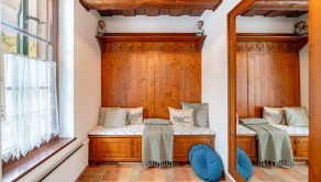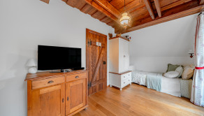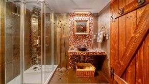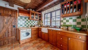 Celý dom je vkusne ladený, pôsobí útulne a vytvára veľmi príjemnú atmosféru. Dominujú v ňom drevené prvky, ako sú stropy, interiérové dvere a okná s izolačným trojsklom, ktoré dopĺňajú tradičné okenice. Komfort bývania zabezpečuje elektrické vykurovanie doplnené o podlahové kúrenie na prízemí a v kúpeľniach. Dominantou obývacej izby je krb, ktorý dotvára jedinečnú horskú atmosféru.