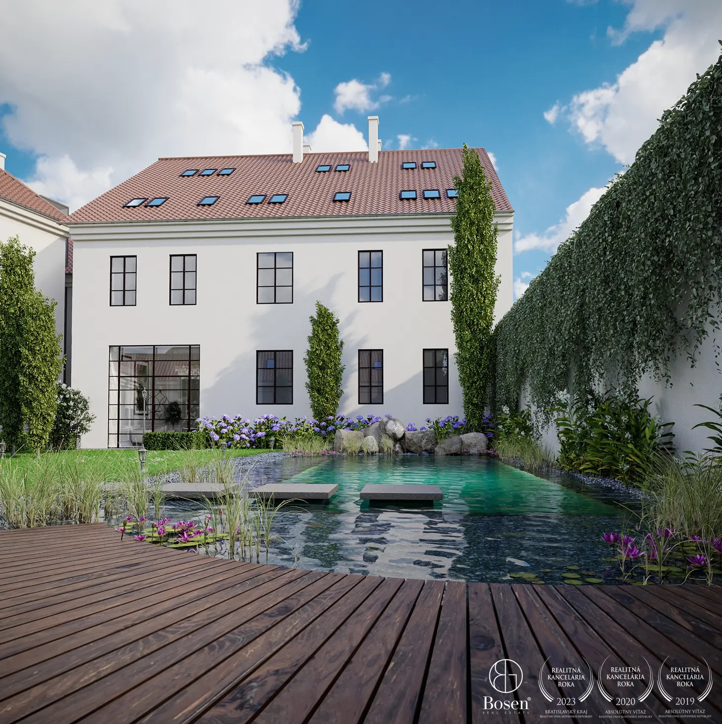 Rezidencia poskytuje reprezentatívne spoločné priestory s panoramatickým výťahom, tiché relaxačné zóny, spoločenské sedenie a harmonické prepojenie interiéru s upraveným vonkajším prostredím s jedinečným kúpacím jazierkom. Ideálne prostredie pre klientov, ktorí vyhľadávajú eleganciu, súkromie a unikátny charakter bývania.