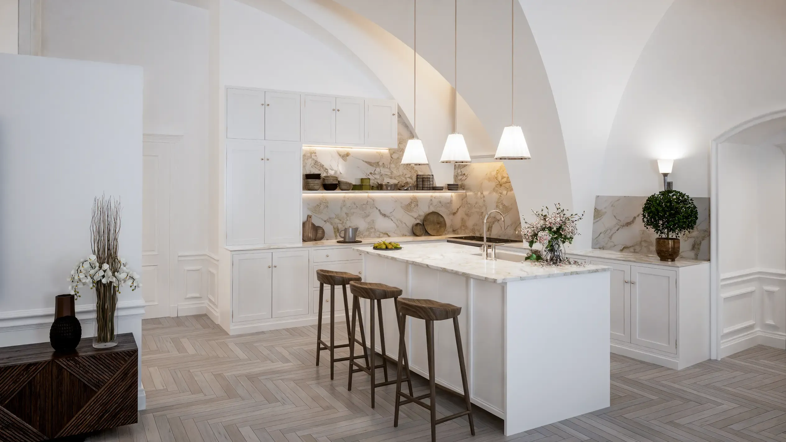 V Žofia Residence Vás privítajú ikonické klenbové stropy, vitrážové okná a starostlivo zachované historické materiály – prvky, ktoré z projektu robia jedinečné dielo.